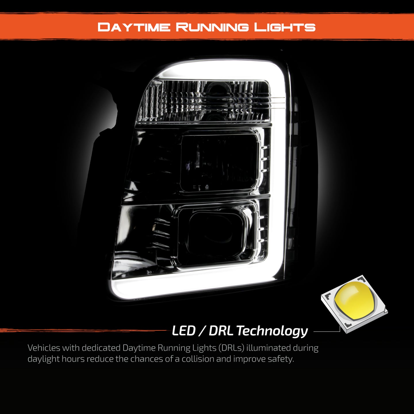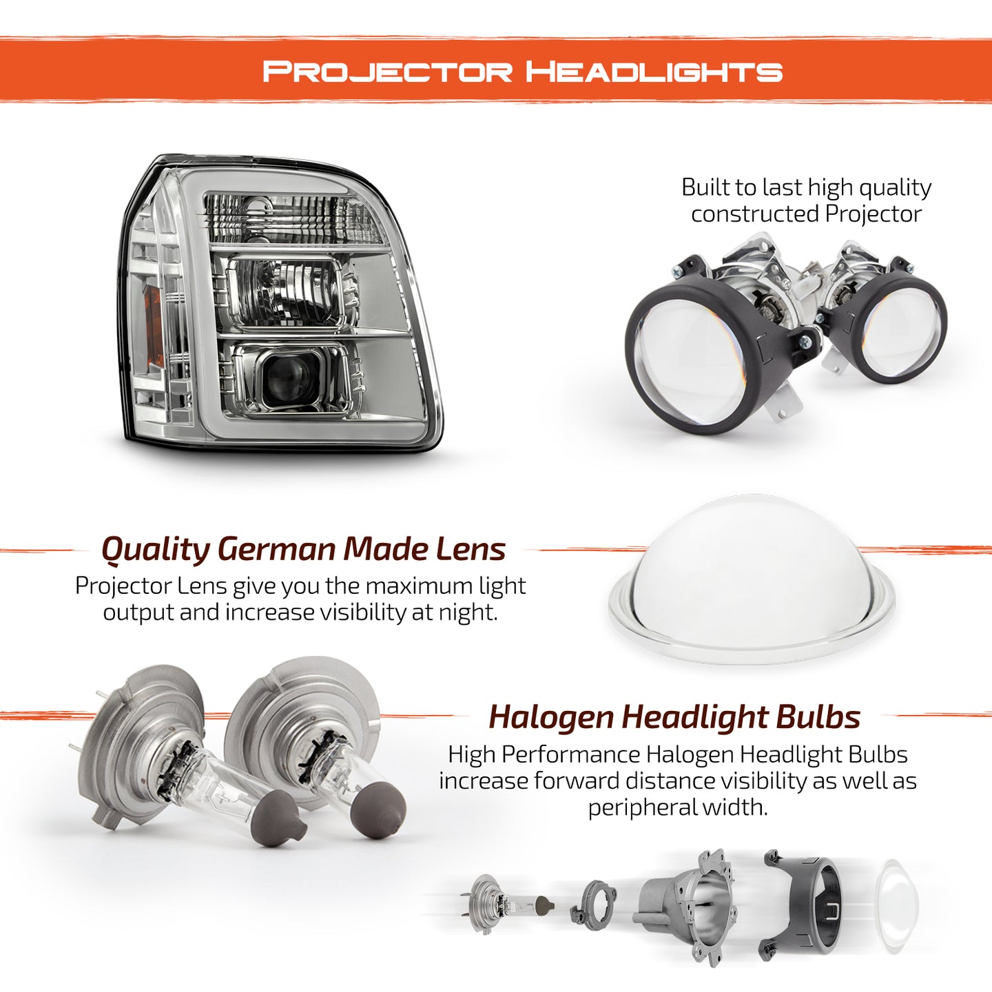 AKKON - Fit 2007-2013 GMC Yukon XL 1500 2500 Denali [LED Tube Parking] Low-Beam Projector Chrome Headlight Pair Driver+Passenger