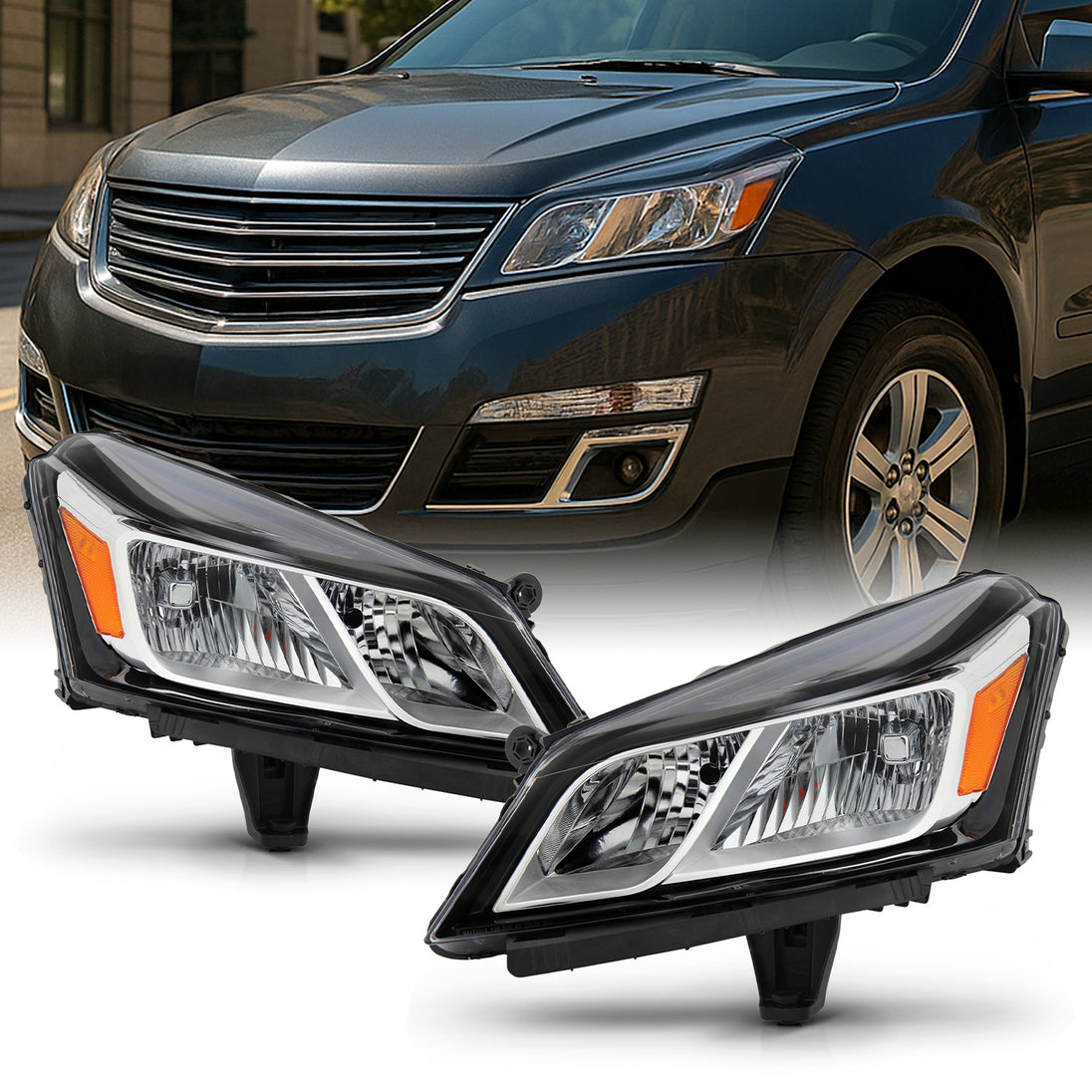 AKKON - Fits 2013 2014 2015 2016 2017 Chevy Traverse [Halogen Type] Chrome Headlights Pair Headlamps Driver Left+Passenger Right