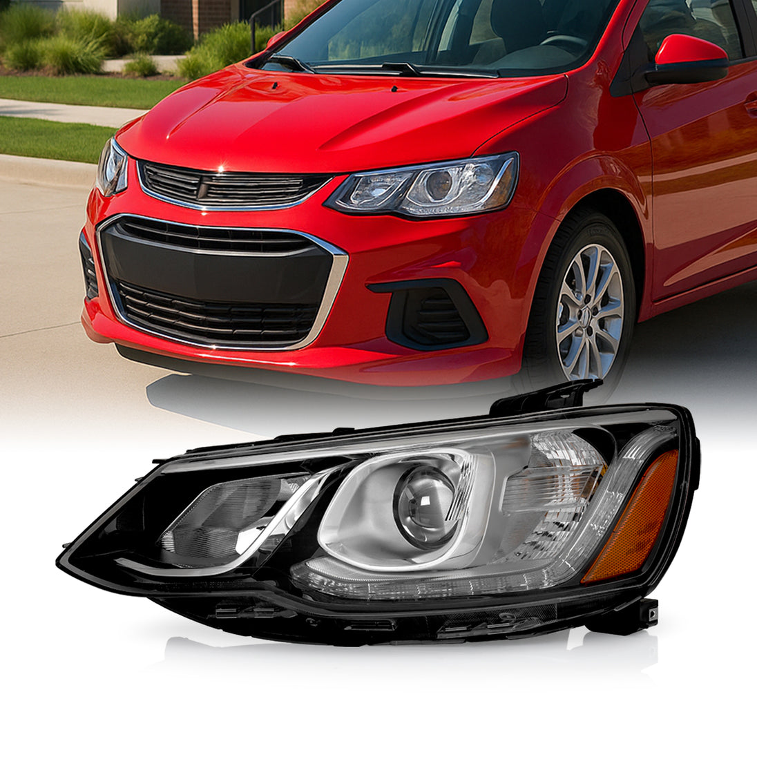 AKKON - Fits 2017-2020 Chevy Sonic [Halogen Type] Projector Black Headlight Driver Left w/ LED DRL Running Bar Signal