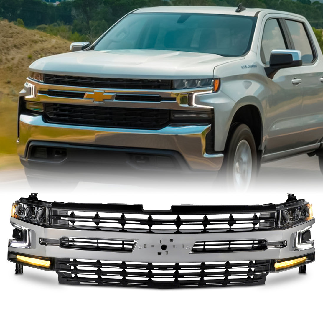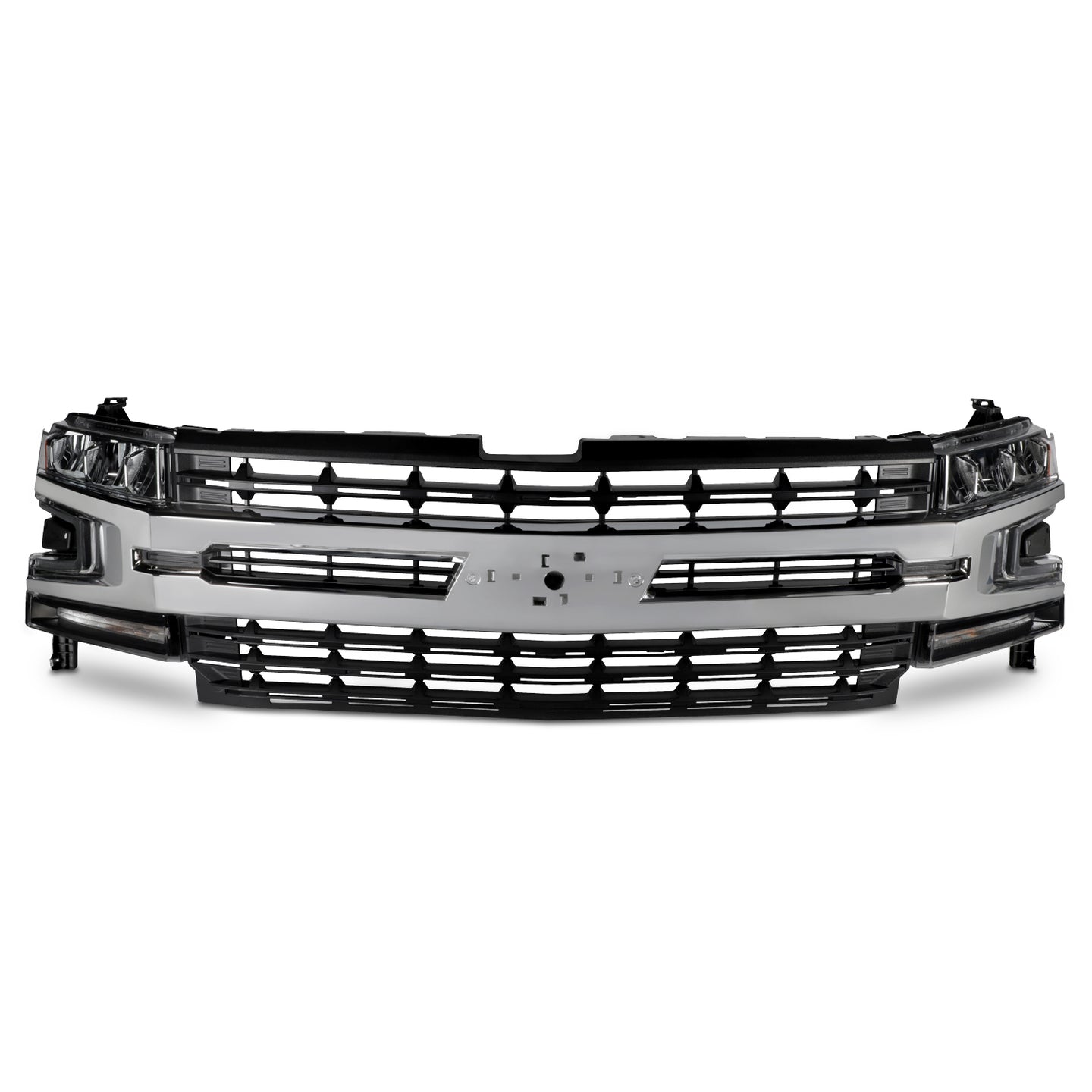 AKKON - Fits 2019-2022 Chevy Silverado 1500 Halogen Headlights Pair Left+Right w/Front Chrome Grille Set