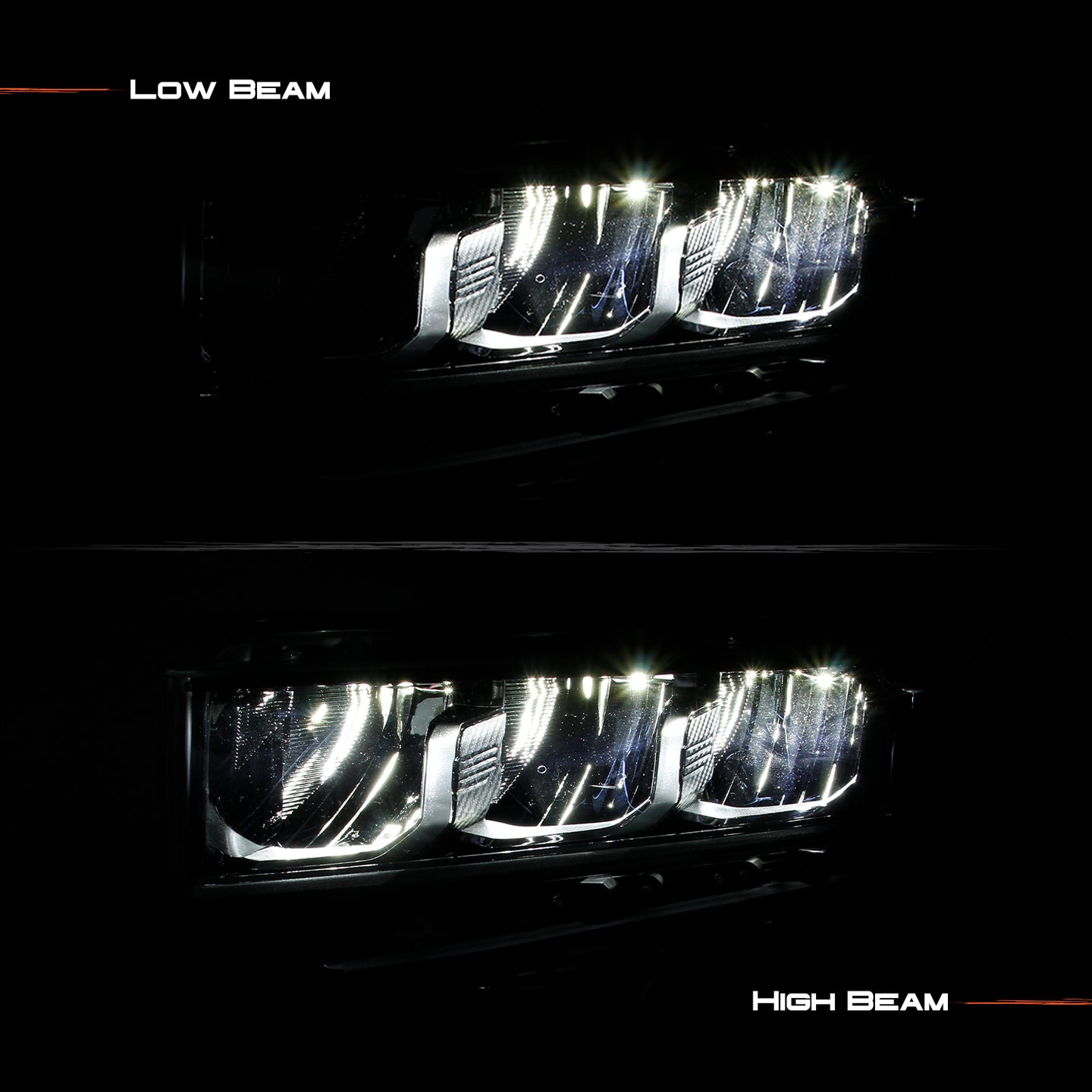 AKKON - Fits 2019-2021 Chevy Silverado 1500 [FULL LED] Black Headlights Driver+Passenger Pair w/ LED Running Tube