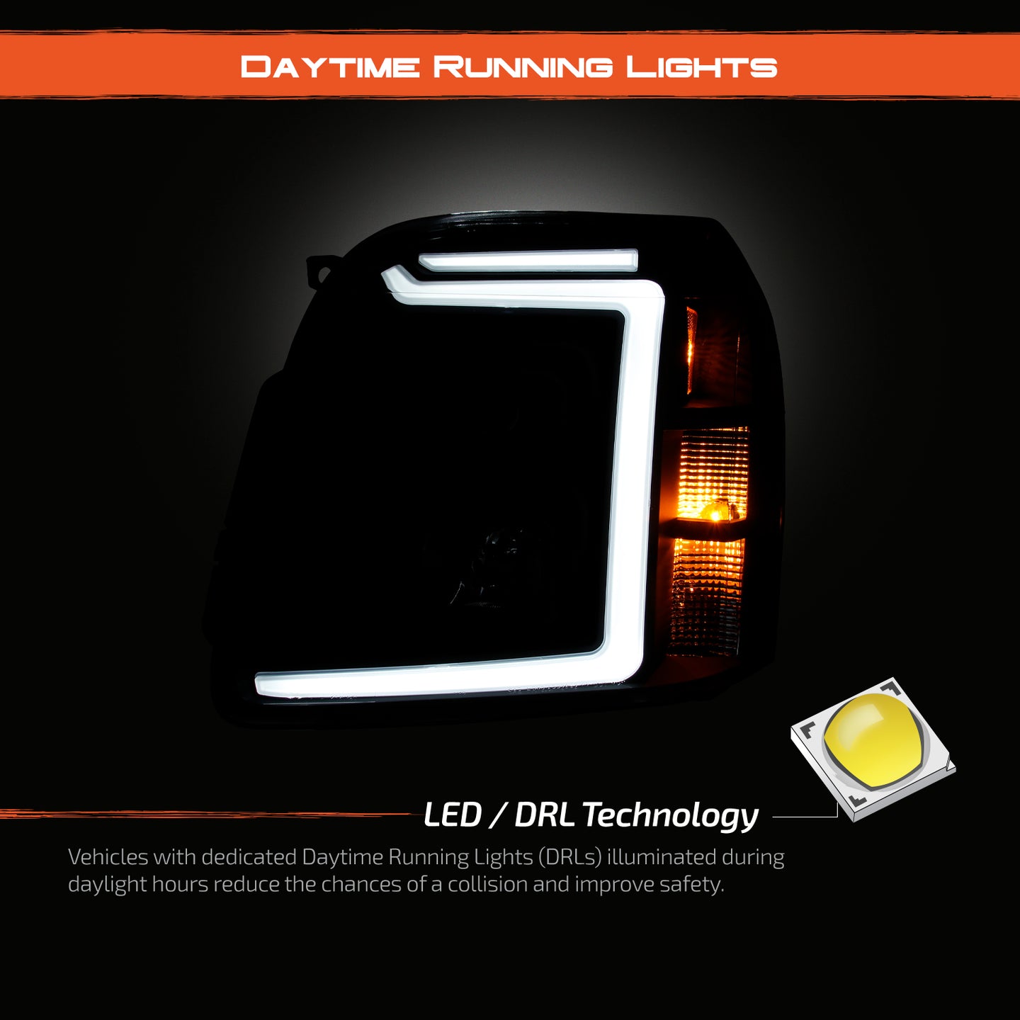 AKKON - For 2007-2014 Cadillac Escalade Xenon/HID Model Type Chrome Housing LED Daytime Running Light Tube Projector Headlight