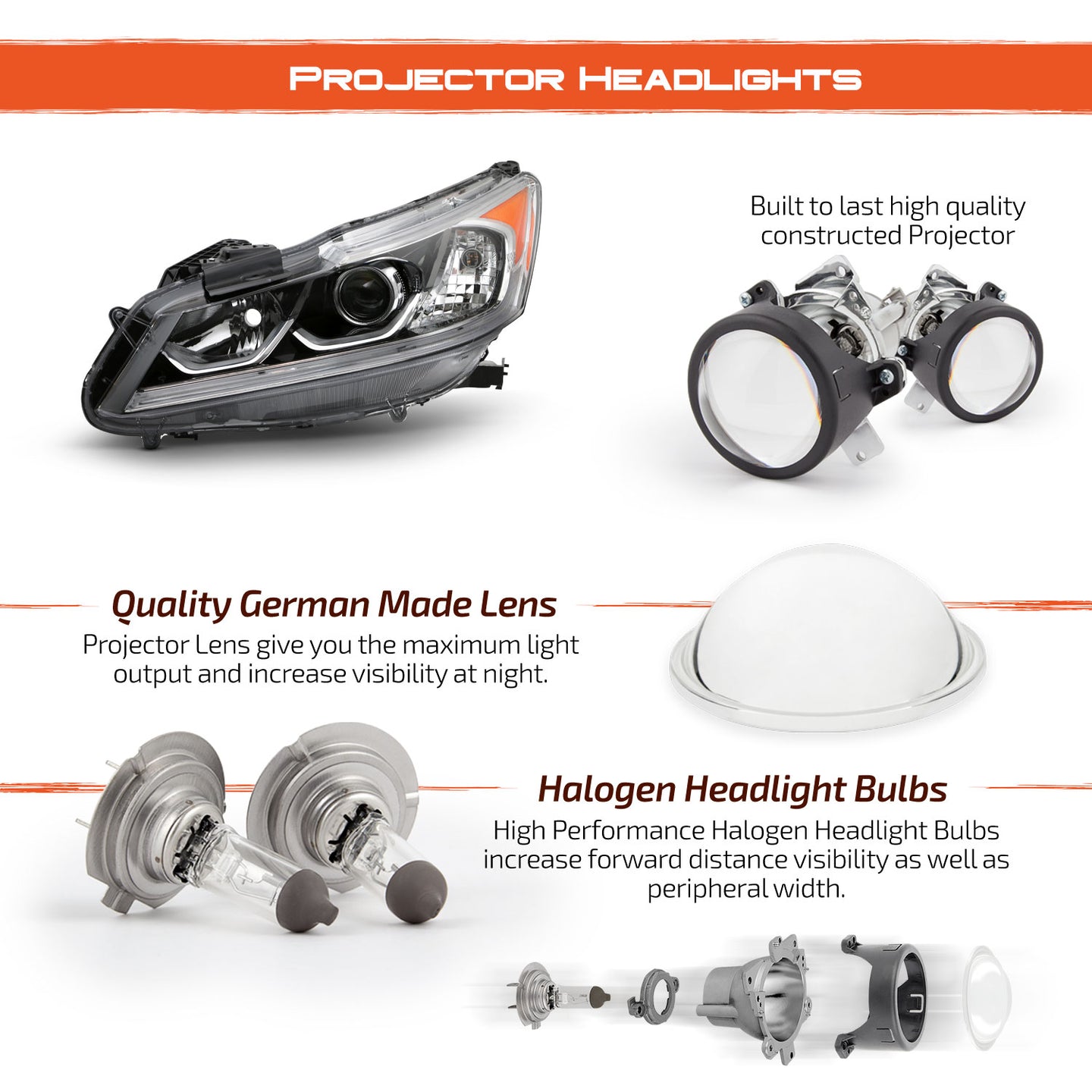 AKKON - Fits 2016-2017 Honda Accord EX EX-L SE Sport Halogen Type [LED DRL Models] Projector Chrome Headlight Driver Left Side