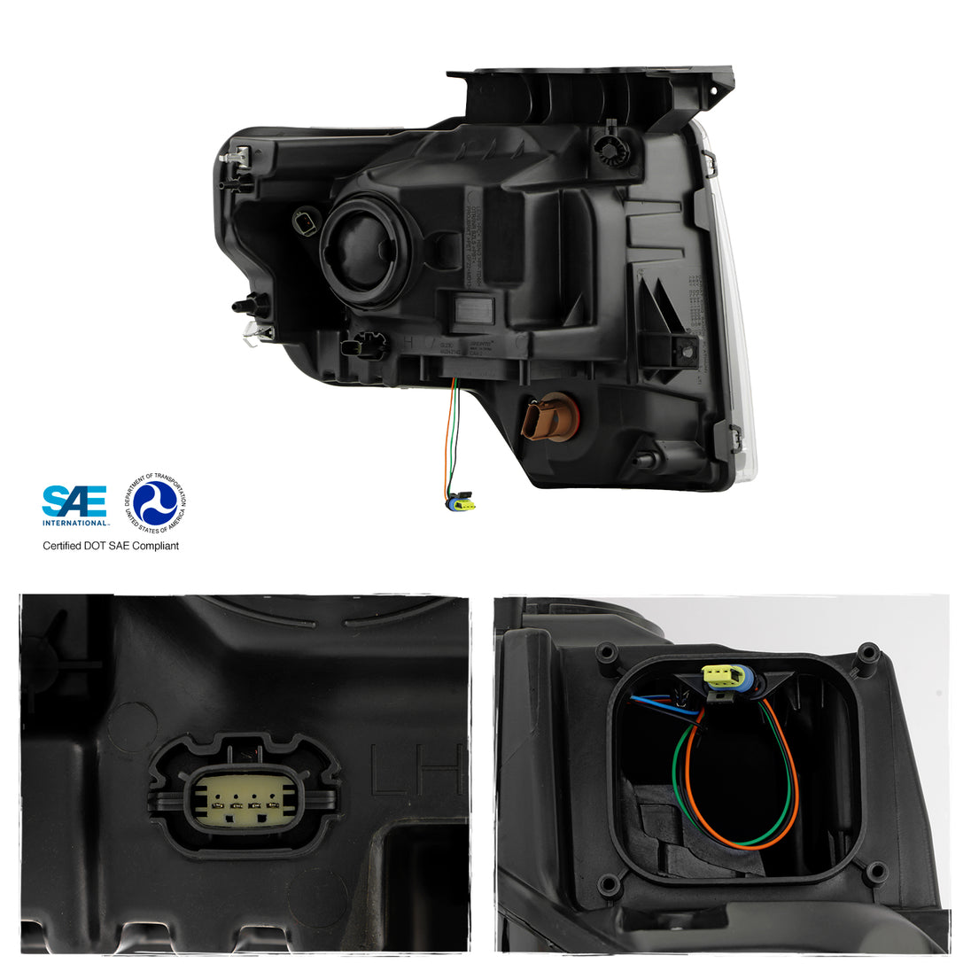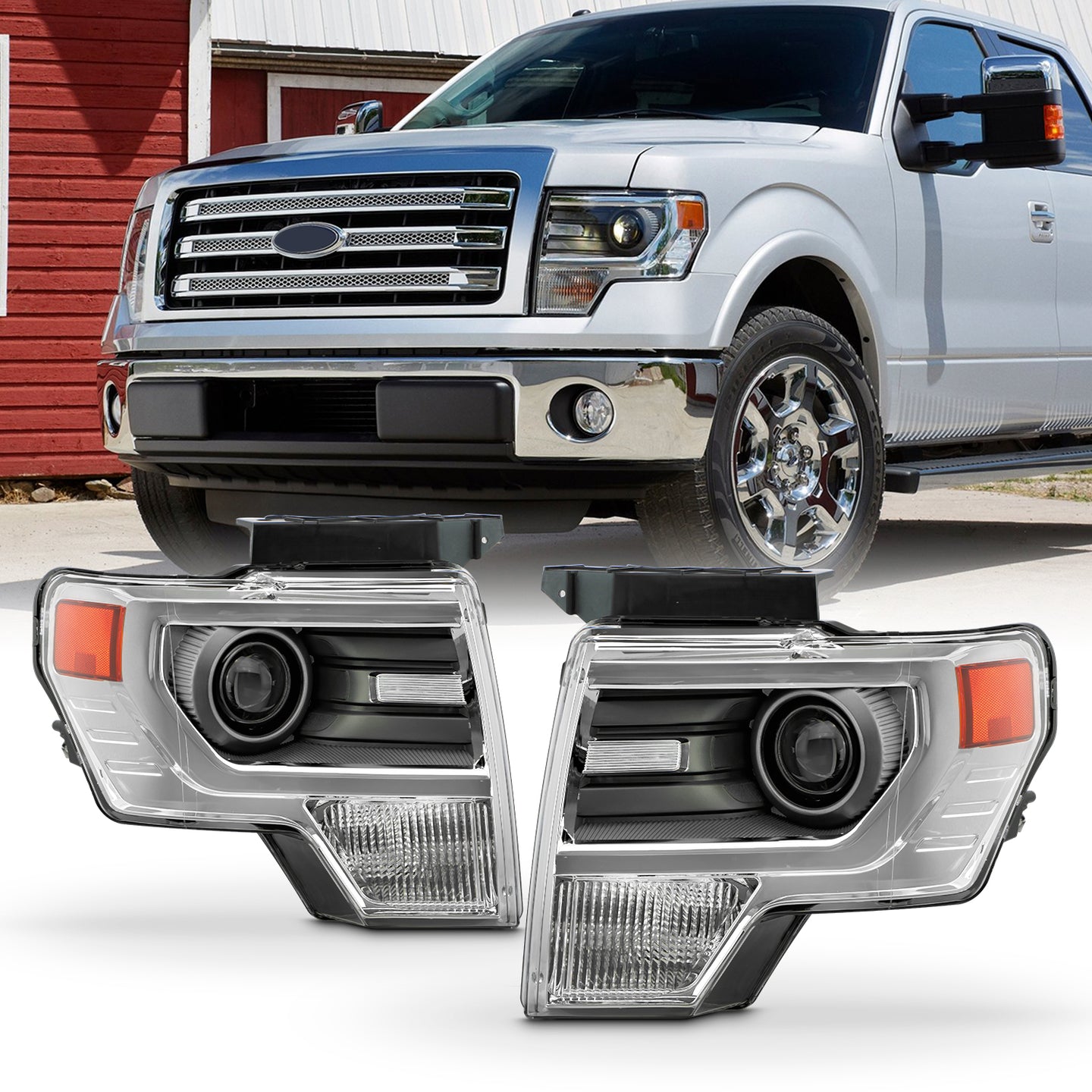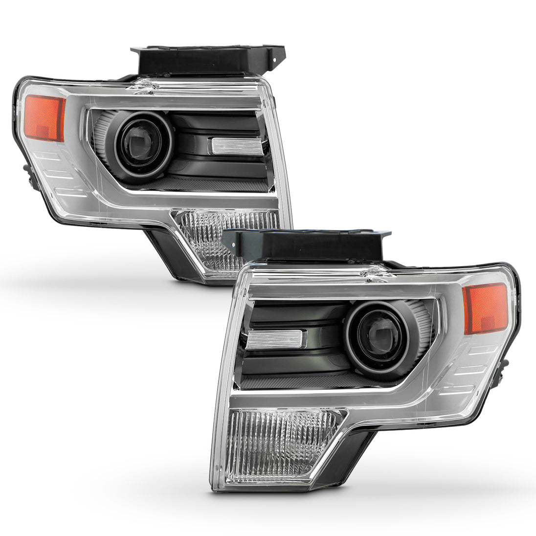 AKKON - Fits 2013-2014 Ford F150 F-150 [HID Type] Projector Chrome w/Grey Housing Headlights Pair Driver+Passenger LH+RH
