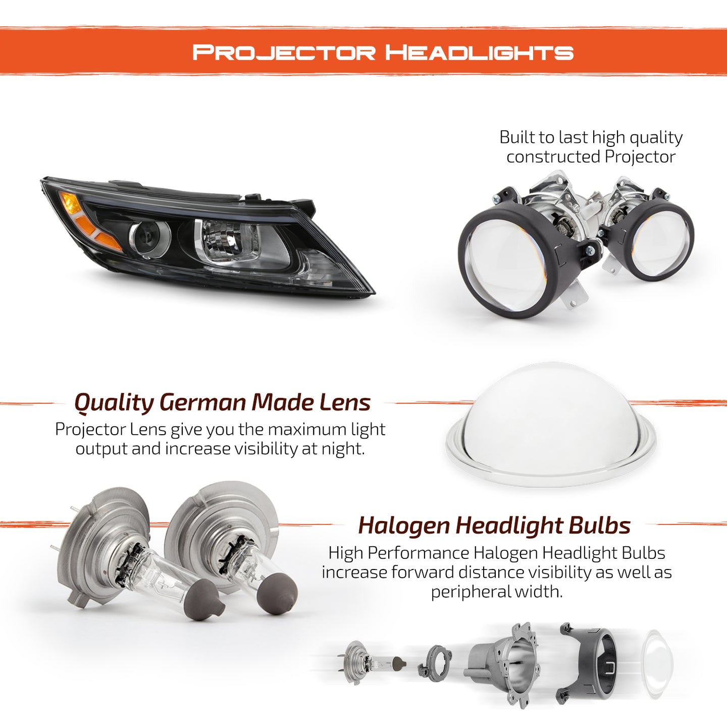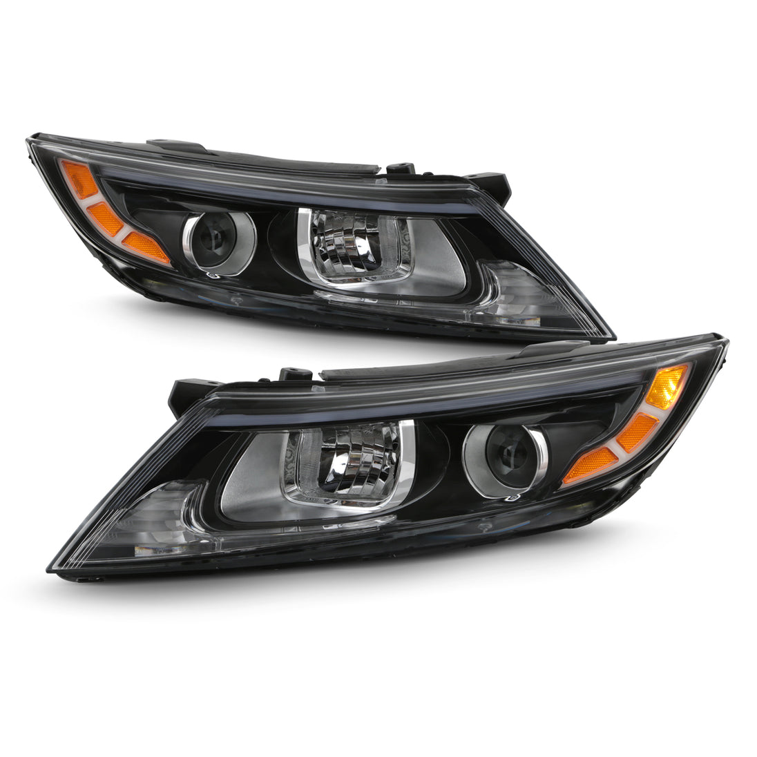 AKKON - Fits 2014-2015 Optima [Halogen Type] Projector Black Headlights w/o LED Position Light Pair Driver + Passenger Side