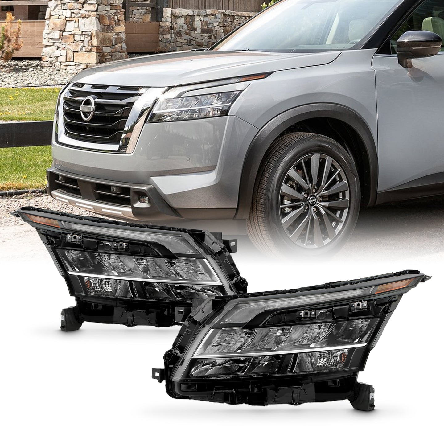 AKKON - Fits 2022-2023 Nissan Pathfinder LED Chrome Headlights w/ Halogen Turn Signal Pair Left+Right Replacement 22 23