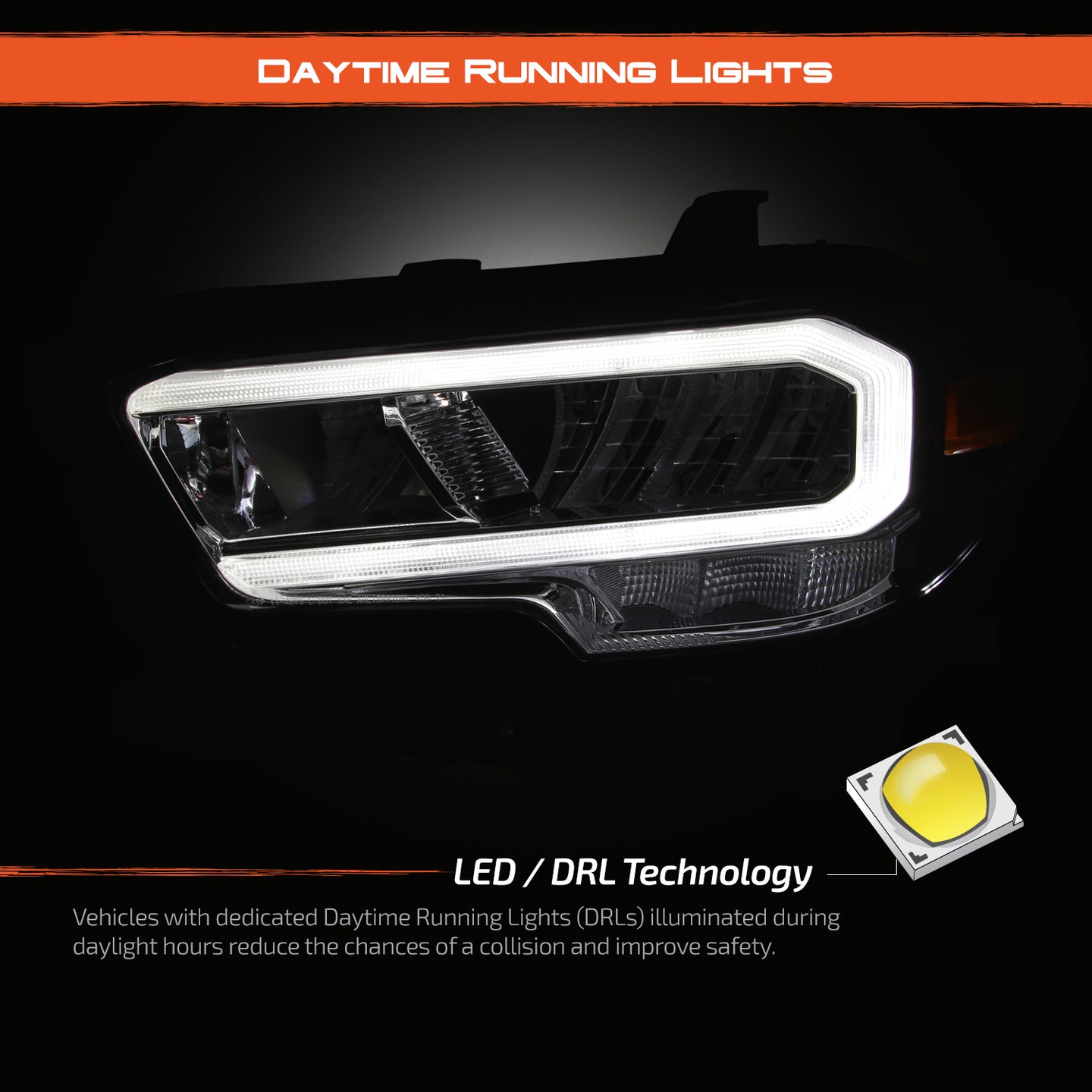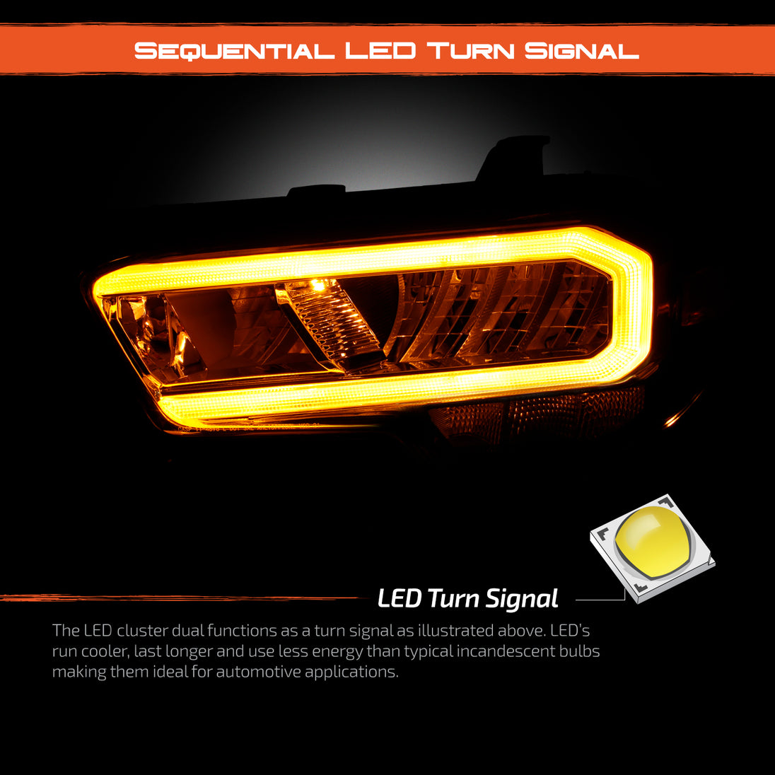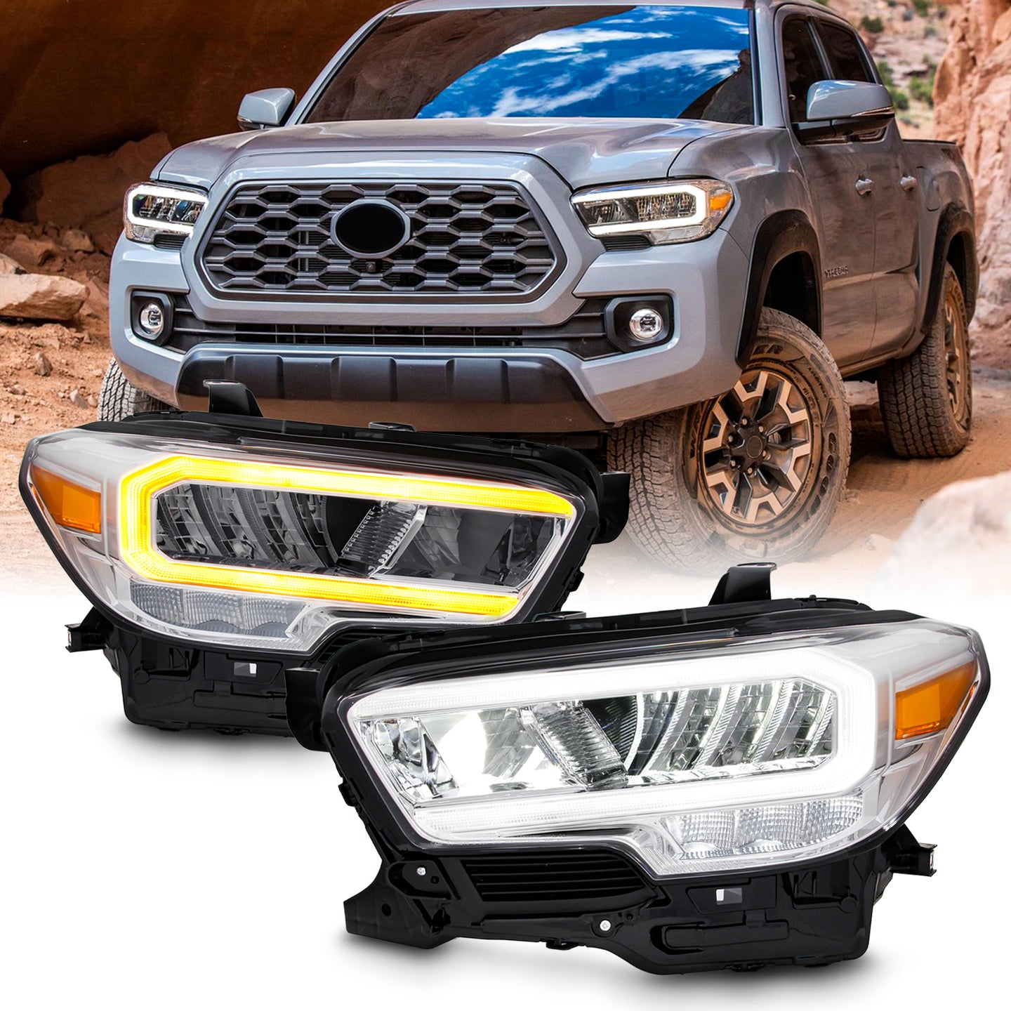 AKKON - Fits 2016-2022 Toyota Tacoma [Full LED] Projector Chrome Headlights Pair with DRL Running + Sequential Signal