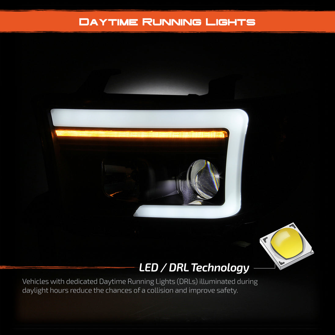 AKKON - Fits 2007-2009 Toyota Tundra 08-10 Sequoia Projector Black Headlights w/ Sequential Signal + LED Tube Parking Lamp Pair