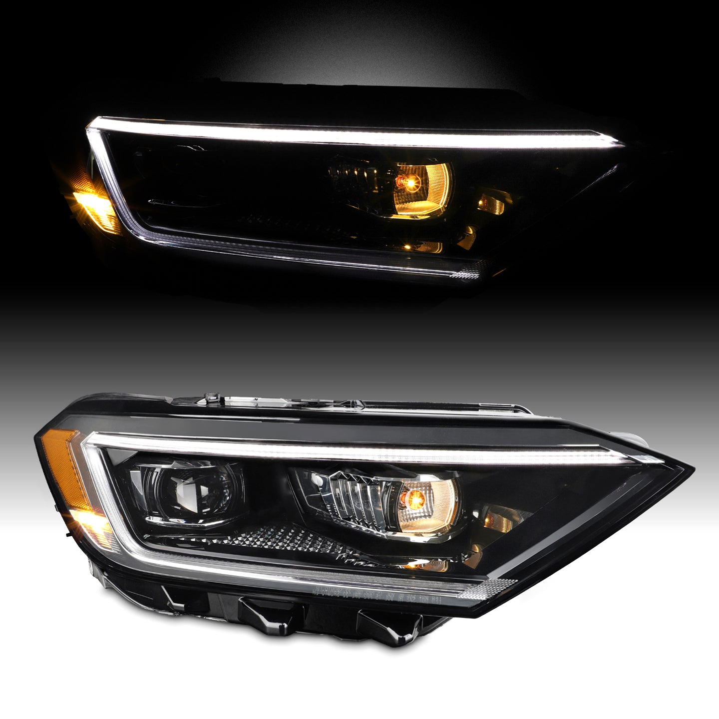 AKKON - Fits 2019 2020 2021 Volkswagen Jetta LED Tube DRL Running Lamp Projector Black Headlight Passenger Right Side