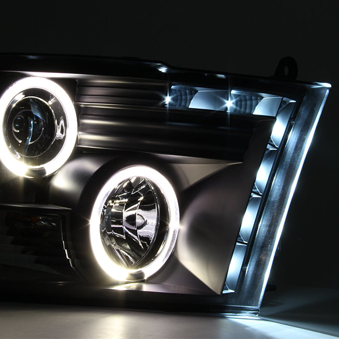 AKKON - Fits 2013-2018 Ram 1500 2500 3500 LED DRL Running Halo Projector Black Headlights + LED Red Tail Lamp w/Wire Set