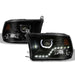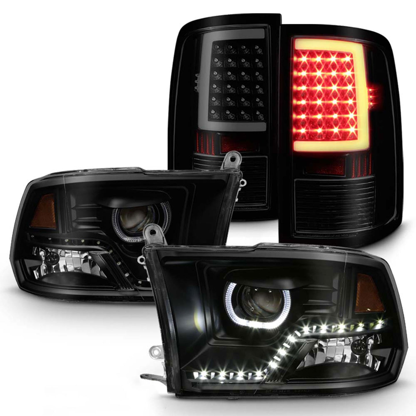 AKKON - Fits 2009-2018 Ram 1500/2500/3500 SMD LED Halo Projector Black Smoke Headlights + C-Tube LED Blk Smoked Tail Brake Lamp