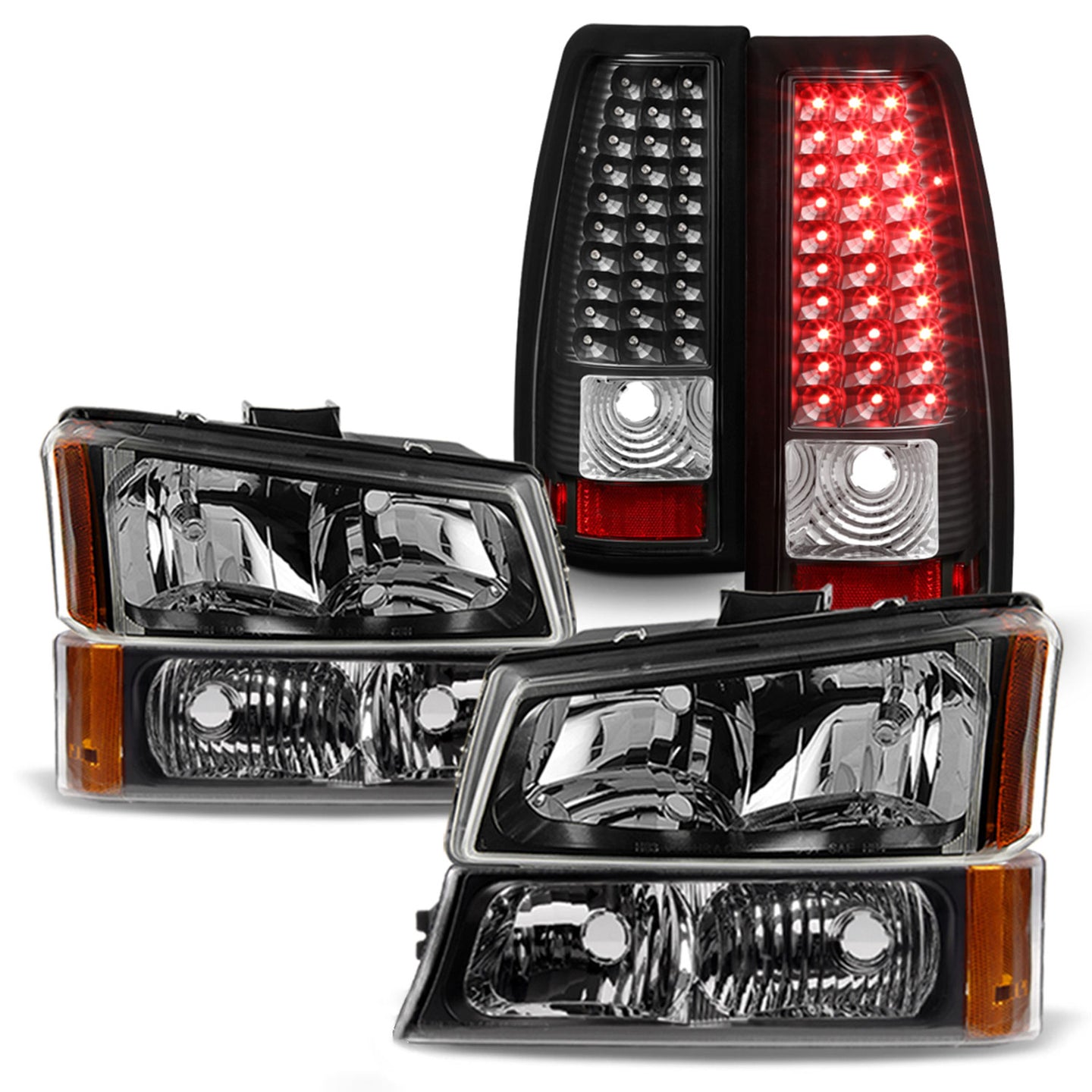 AKKON - Fits 2003-2006 Silverado 1500/ 1500HD/2500/ 2500HD/ 3500 2007 Classic Black Headlight+ Bumper Lamp+ LED Tail Brale Light