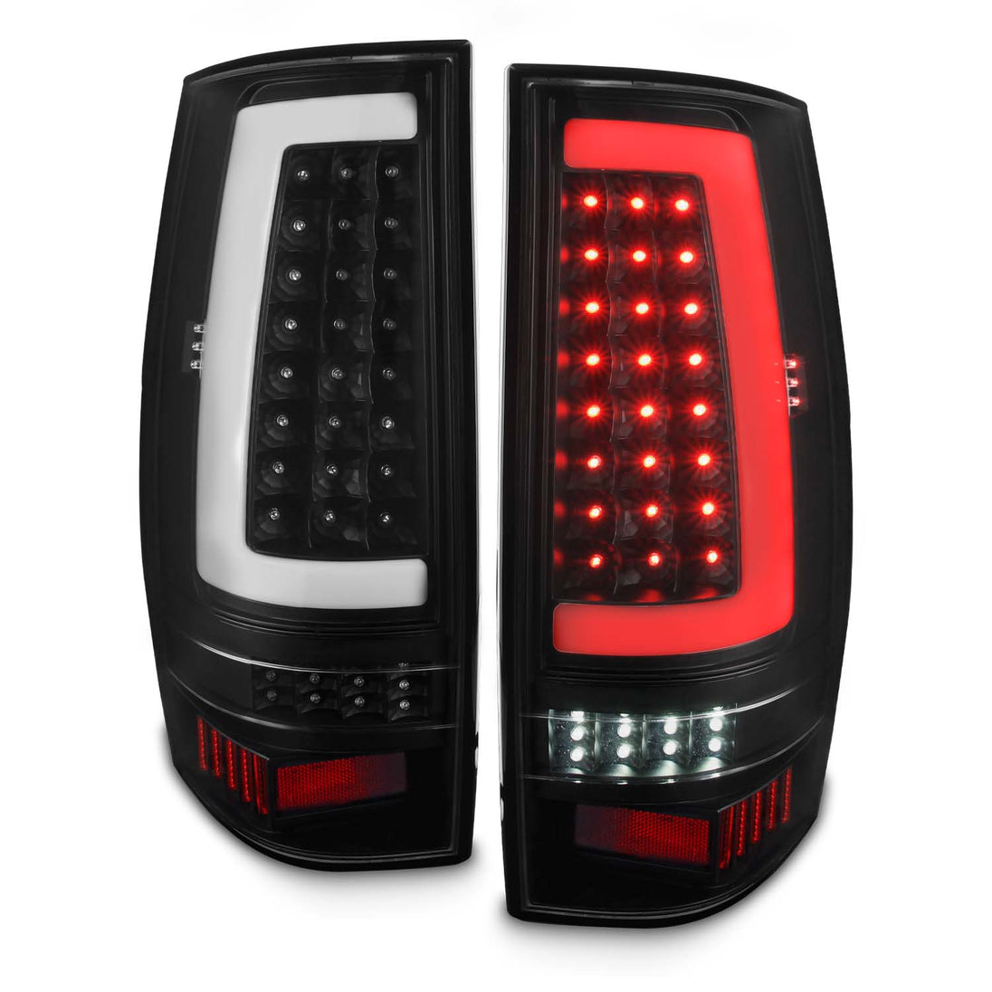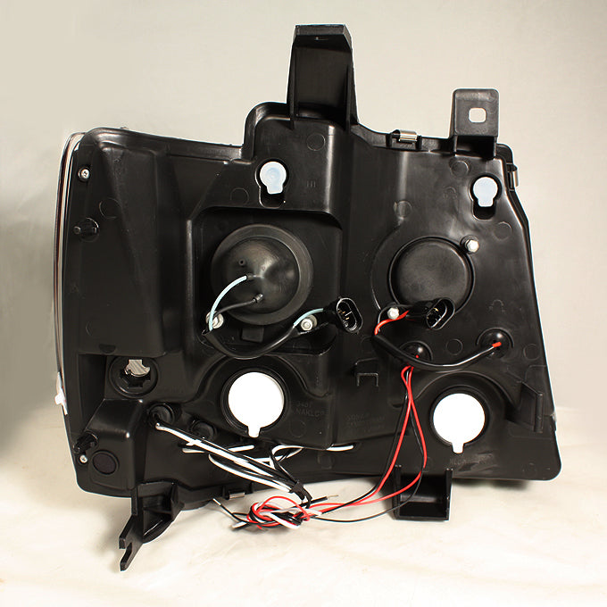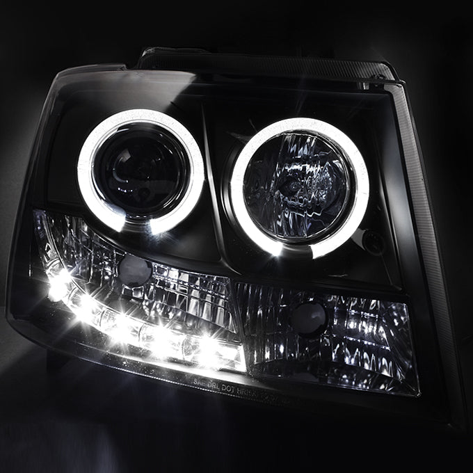 AKKON - Fits 2007-2014 Chevy Tahoe Suburban 1500 Dual Halo Projector Black Headlights + LED C-Tube DRL Tail Lights Pair