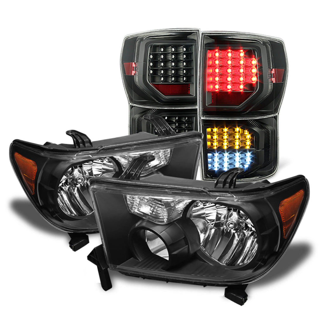 AKKON - Fits 2007-2013 Toyota Tundra Pickup Truck Black Headlights + Full LED Tail Lamp Brake Lights Pair Left+Right Replacement
