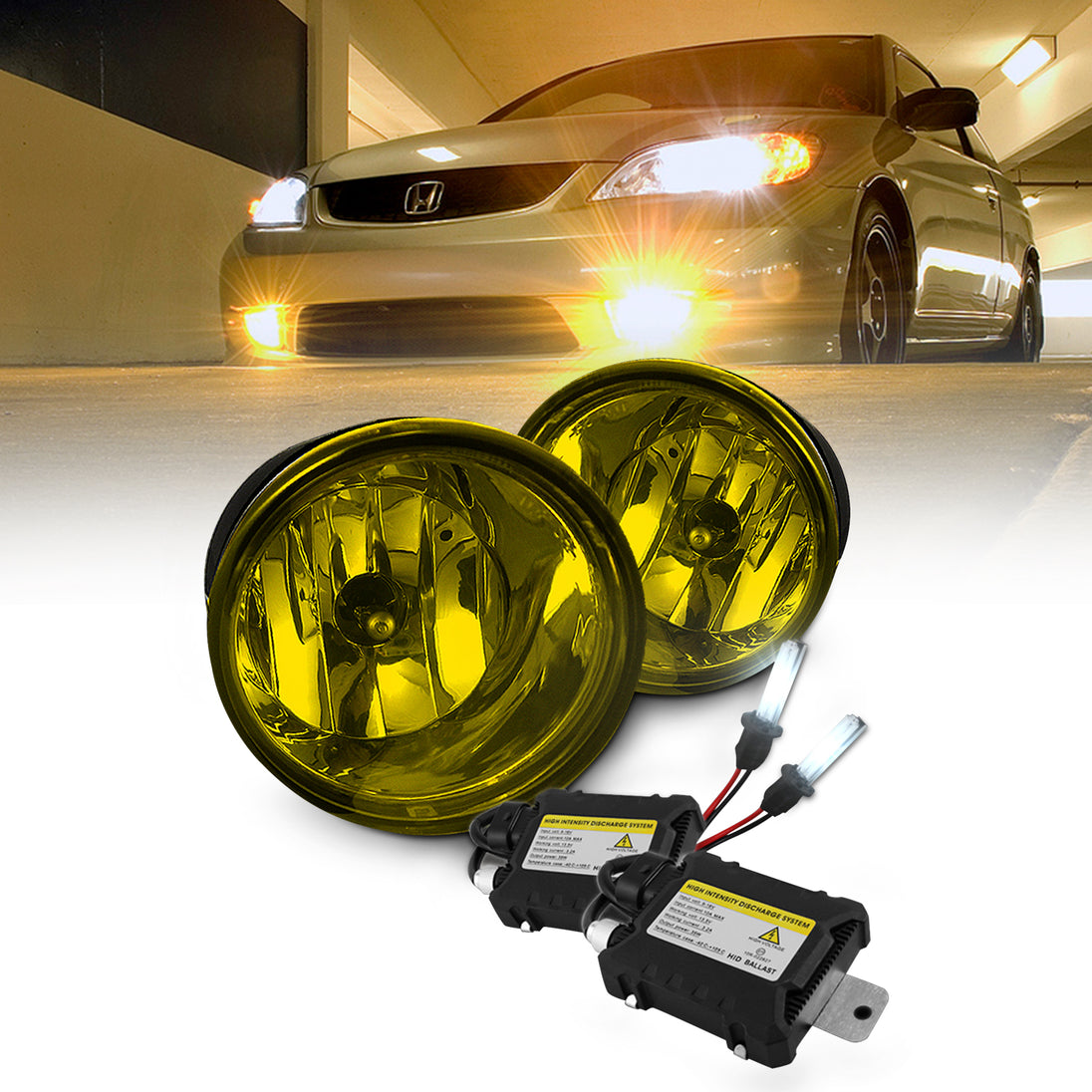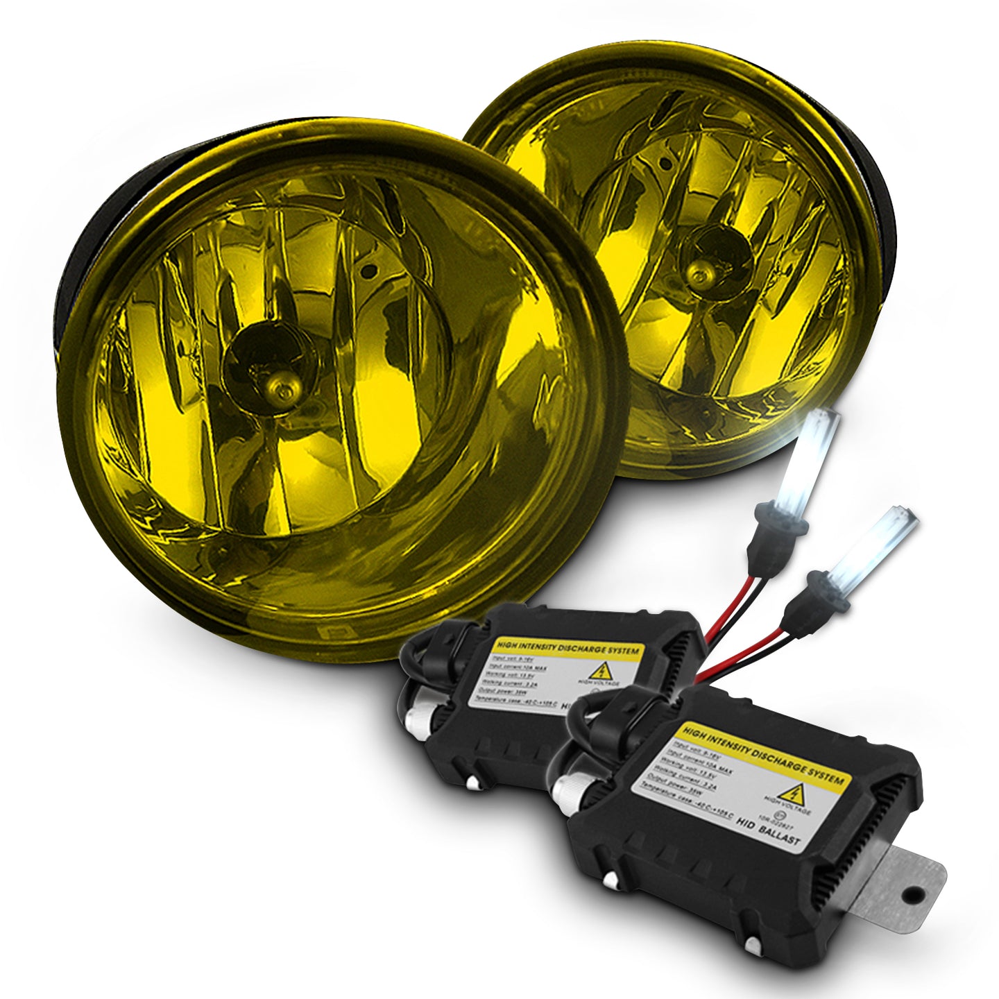 AKKON - Fits 2004-2015 Titan 05-07 Armada Yellow Bumper Fog Lights w/ Bulbs Switch Wiring + Slim Ballast 6000K Xenon HID Pair