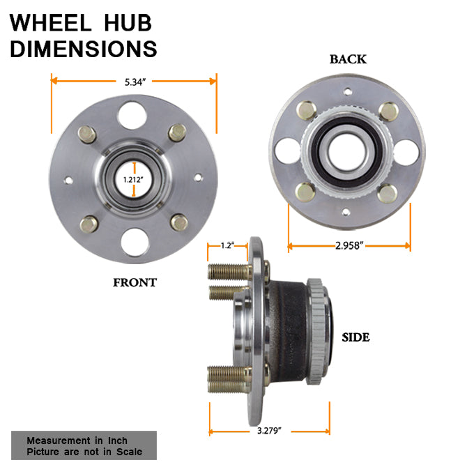 AKKON - For 90-01 Integra | 92-00 Civic | 95-97 del Sol Set of 2 REAR Wheel Hub + ABS + Bearing & 4 Lugs 513105