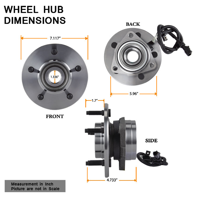 AKKON - For 2000 2001 2002 03 04 Ford F150 | Heritage 4WD Set of 2 FRONT Wheel Hub & Bearing + ABS & Lug 515029