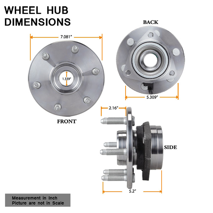 AKKON - For Escalade Avalanche Yukon Silverado Sierra 4WD Set of 2 FRONT Wheel Hub & Bearing w/ABS + Lug 515036