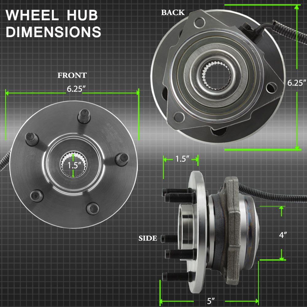 AKKON - For 02-07 Jeep Liberty KJ SUV 513176 Pair of 5-Bolt Front Wheel Hub and Bearing Assembly W/ ABS