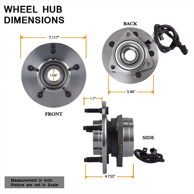 AKKON - For 1997 1998 1999 2000 Ford F150 Pickup Truck 4WD FRONT Wheel Hub & Bearing + ABS Ring & 5 Lug 515010