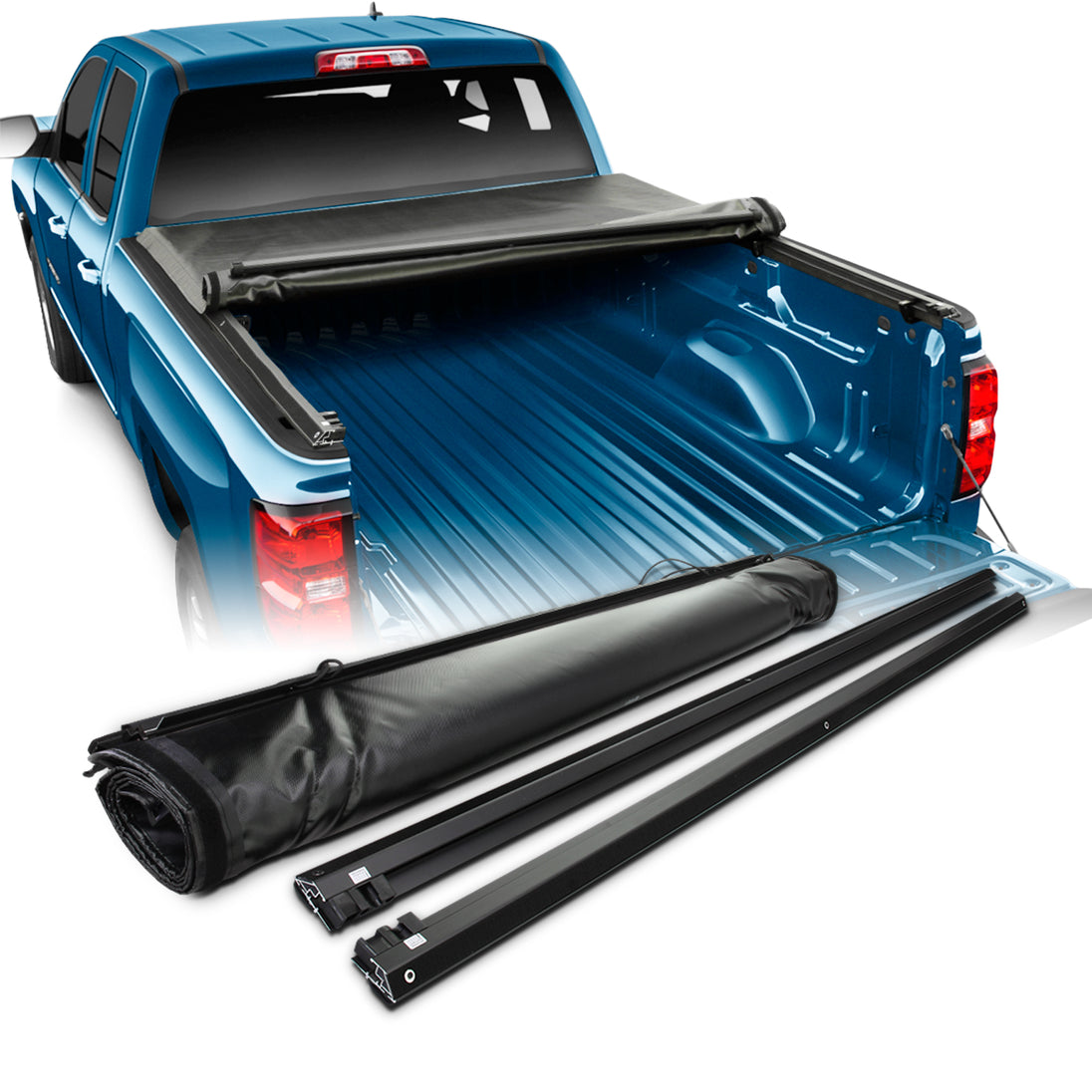 AKKON - Soft Roll Up Tonneau Cover Fits 2014-2018 Chevy Silverado | GMC Sierra 1500 2500HD 3500 HD 6.5 Feet 78" Bed Model Black