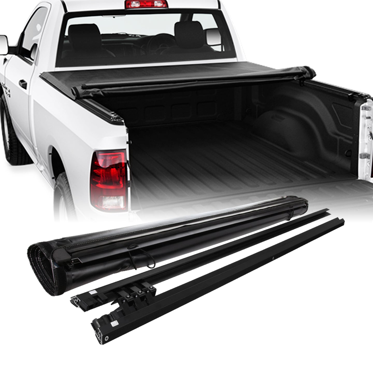 AKKON - Soft Roll Up Tonneau Cover Black Fits 2002 03-08 09 Dodge Ram 1500 2500 3500 Extended Standard 6.5 Ft 78 Inch Fleetside