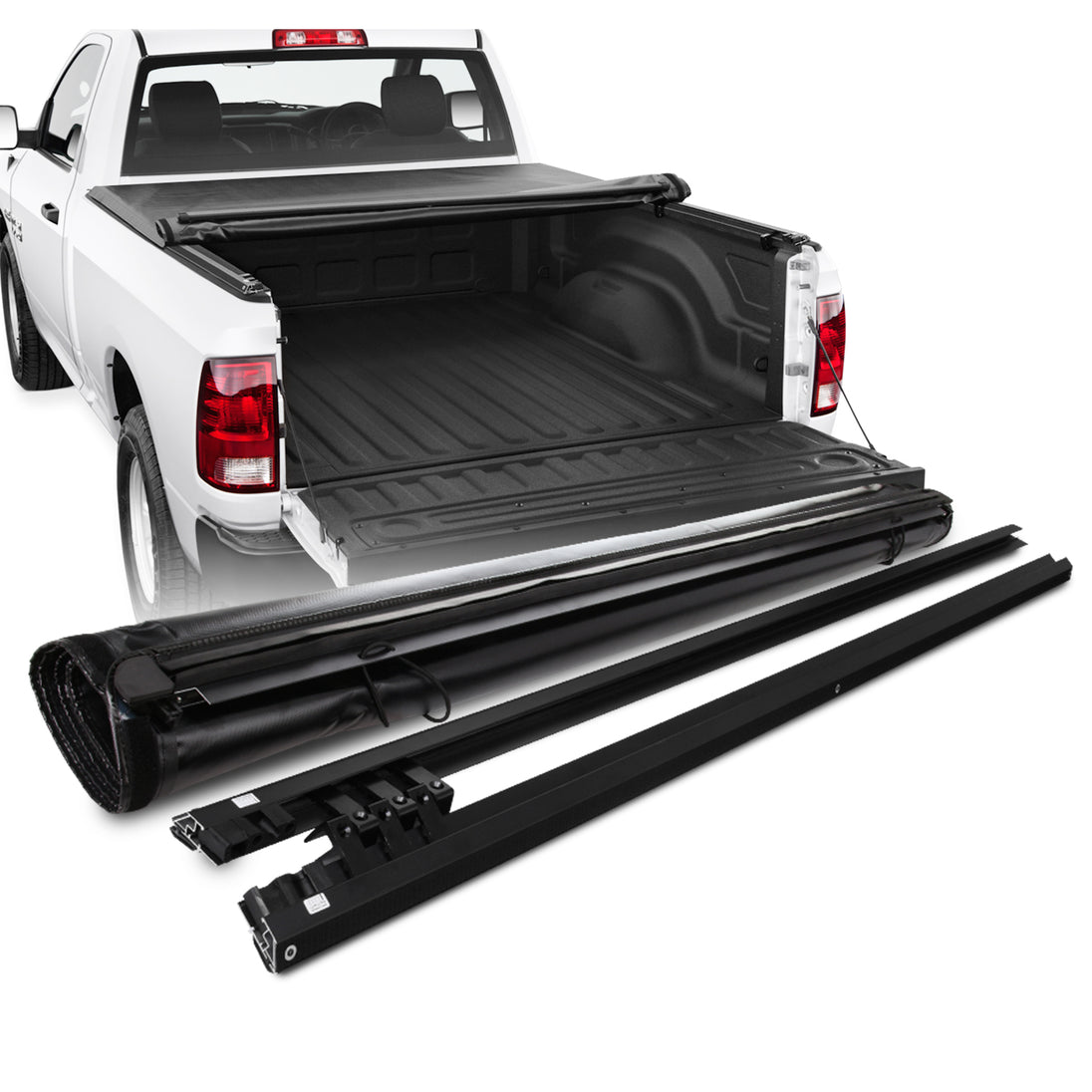 AKKON - Fits 2009-18 Dodge Ram 1500 2010-2018 2500 3500 6.5 Feet 78 Inches Bed Model Black Soft Roll Up Tonneau Cover & Hardware