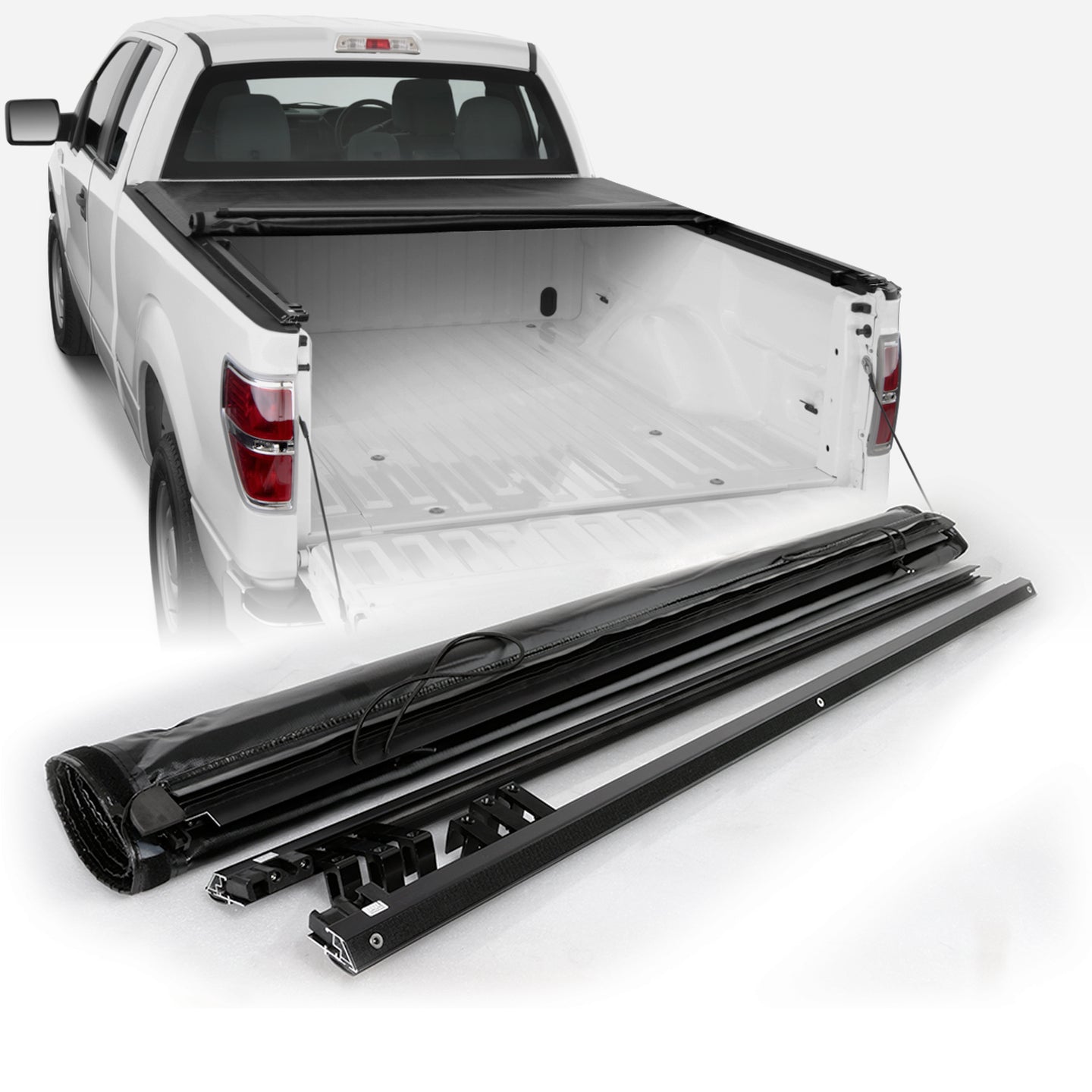 AKKON - Fits 2004-2014 Ford F150 F-150 Crew Cab Pickup Truck 66" 5.5 Ft Styleside Bed Black Soft Roll Up Tonneau Cover &Hardware