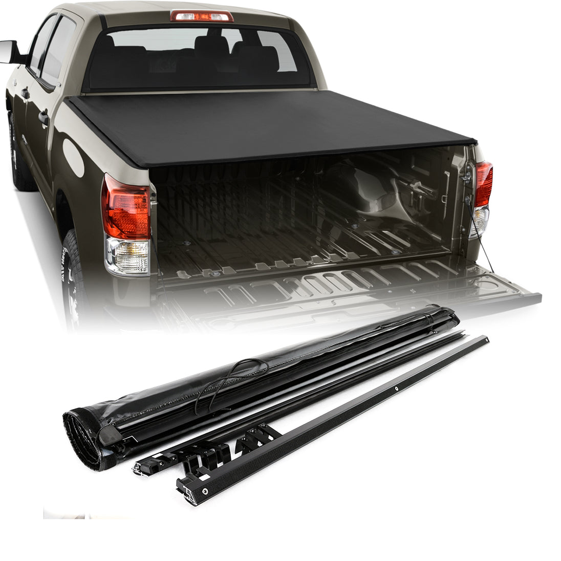 AKKON - Soft Roll Up Black Tonneau Cover Fits 2007-2021 Toyota Tundra Crew Max Cab 5.5 Feet 66 Inches Bed + Hardware Replacement