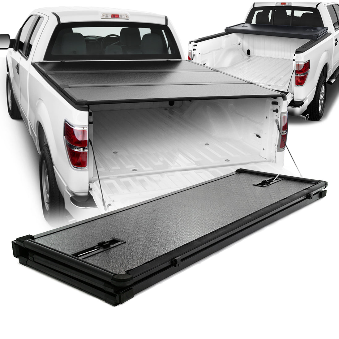 AKKON - Fits 2004-2014 Ford F150 Crew Cab 66 Inches 5.5 Feet Bed Model [Hard Tri-Fold Style] Black Tonneau Cover