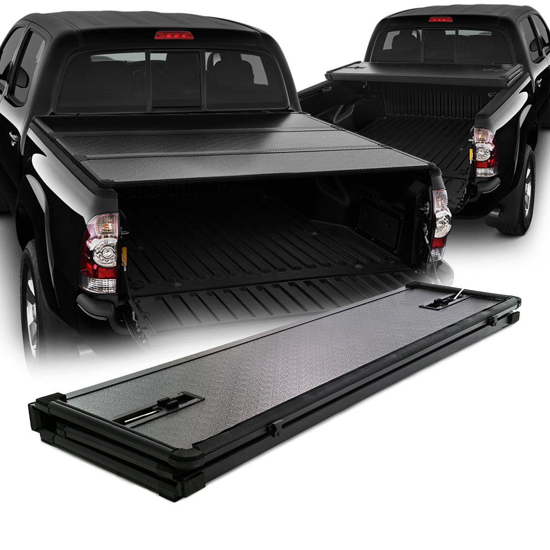 AKKON - Fits 2005-2015 Toyota Tacoma Crew Double Cab 60 Inches 5 Feet Bed Model [Hard Tri-Fold Style] Black Tonneau Cover