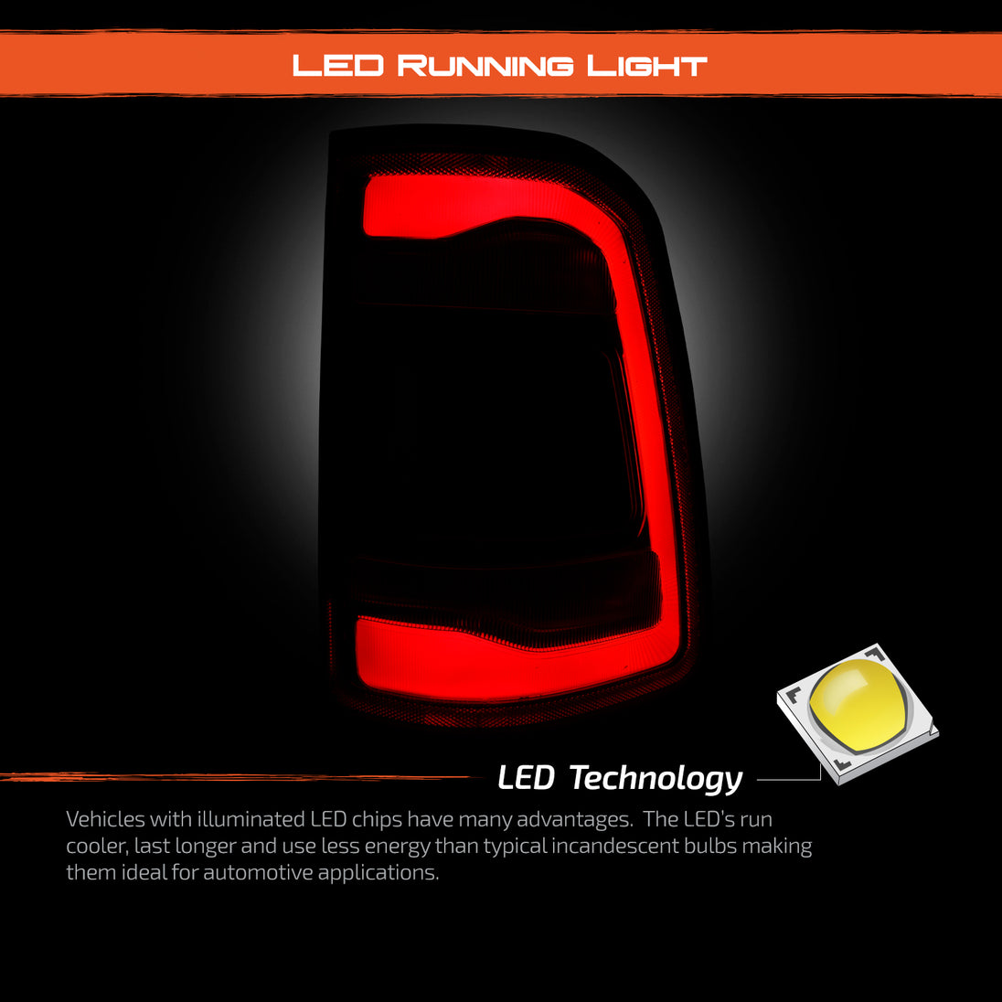 AKKON - Fit 2019-2023 Dodge Ram 1500 Rebel Not-Included Blind Spot Sensor LED Tail Light Rear Lamp Assembly OE Style Black Red Pair/Set