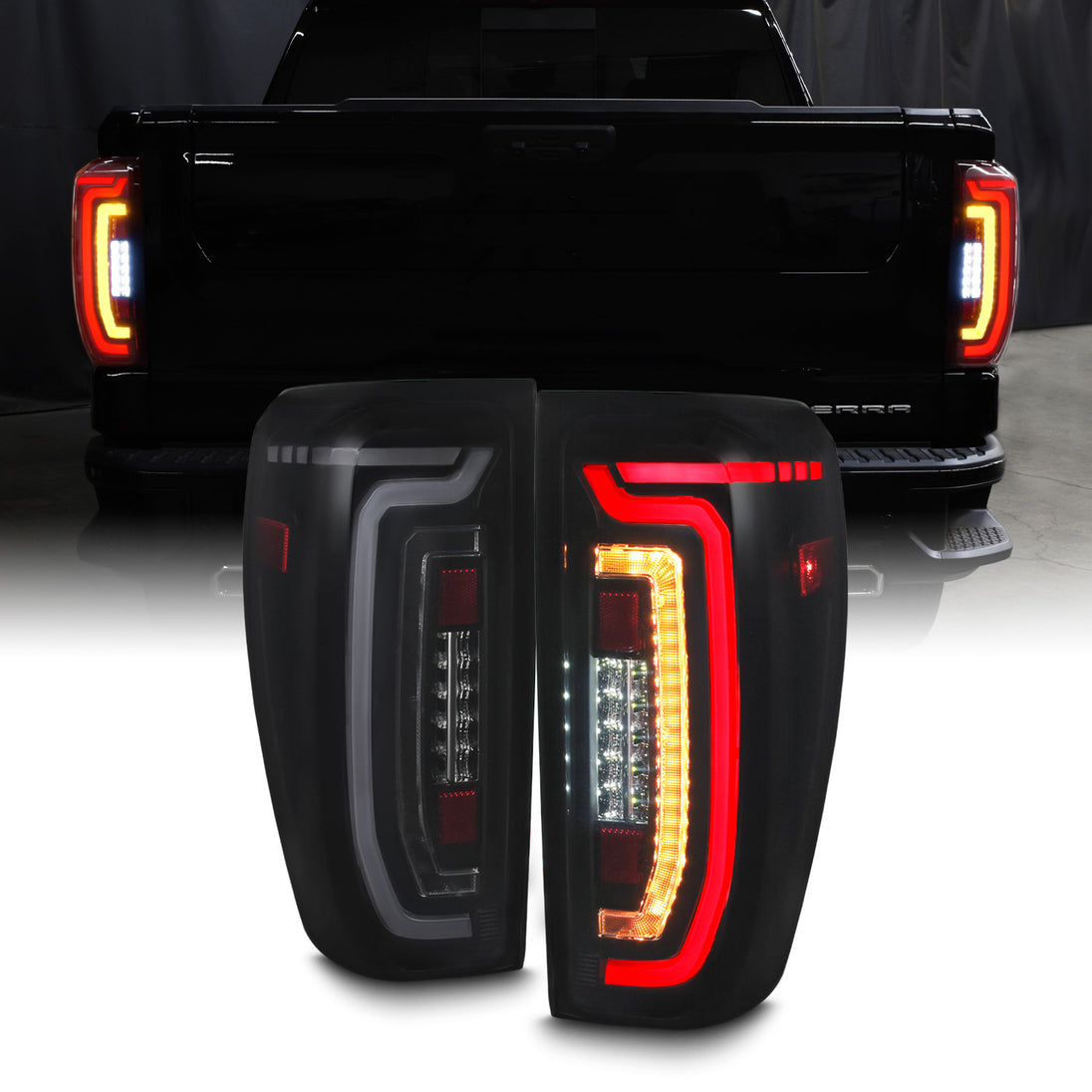 AKKON - Fit 2019 2020 2021 2022 2023 GMC Sierra 1500 [Full LED] Tail Lights Brake Lamps [Halogen Version] Black Smoke Lens