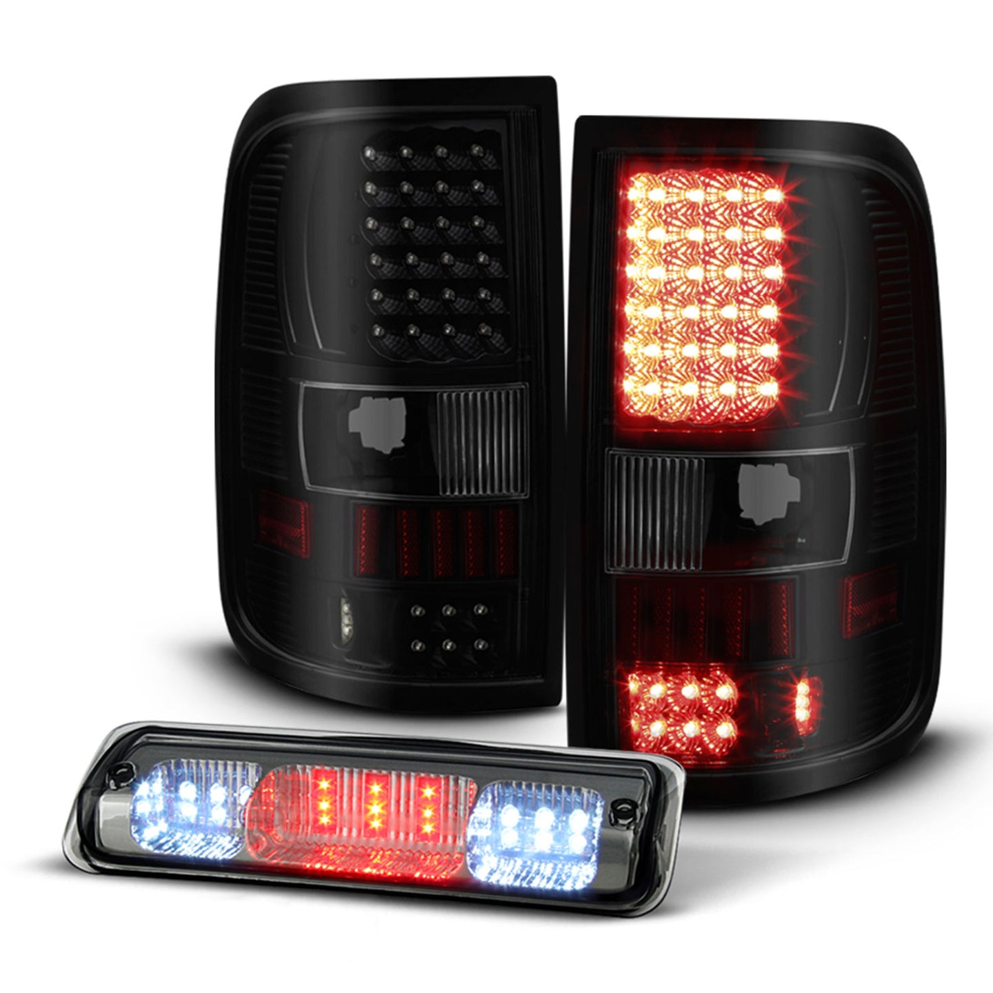 AKKON - [Premium Smoke Lens] Fit 2004-2008 Ford F-150 Pickup LED Tail Lights Lamps in Black Housing + 3rd Brake Light