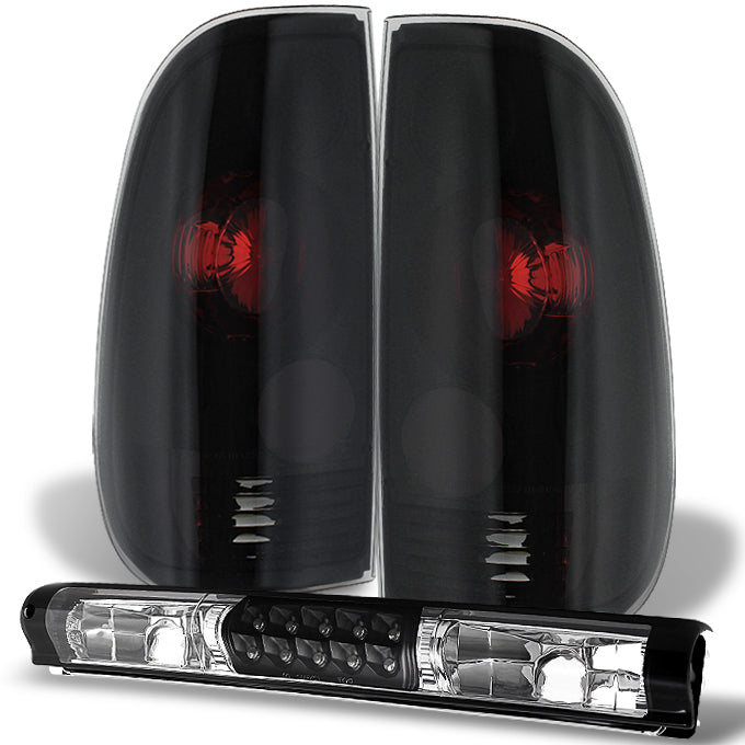 AKKON - [Styleside Type] For 97-03 Ford F-150 F150 97-99 F250 Pickup Truck Black Smoked Tail Light + LED Smoked 3rd Brake Lamp