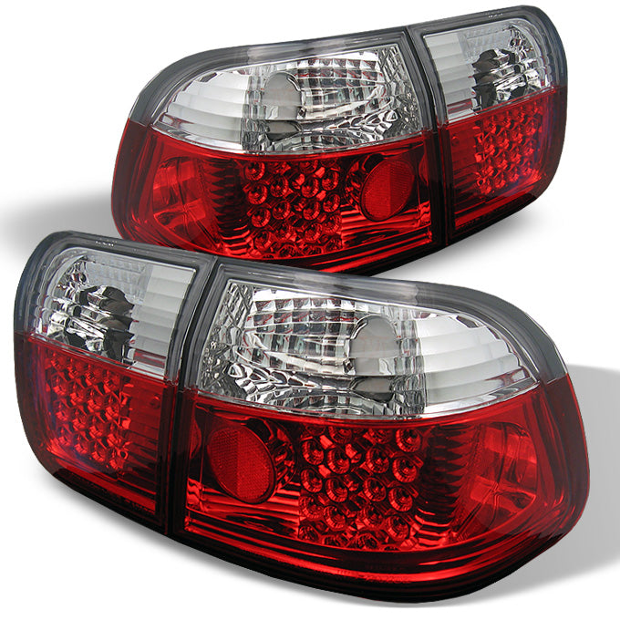 Fits 96-98 Civic 4Dr Sedan JDM Red Clear 4Pcs LED Tail Brake Lights Left+Right