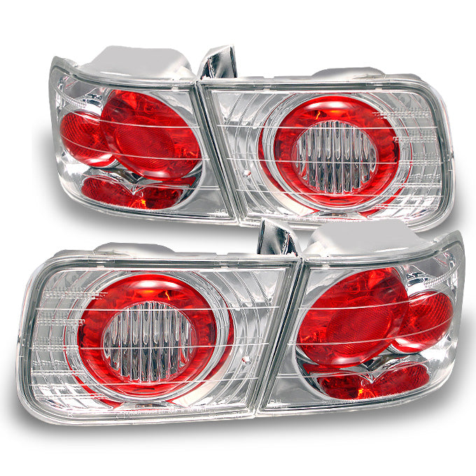 Fits 96-00 Honda Civic 2Dr Coupe Chrome Clear 4Pcs Tail Brake Lights Lamps Pair