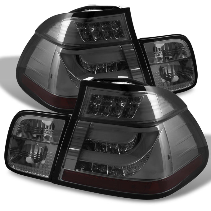 AKKON - For 02-05 BMW E46 3-Series 4 Doors Sedan Red Clear Light Tube Design LED Tail Lights Brake Lamps Pair