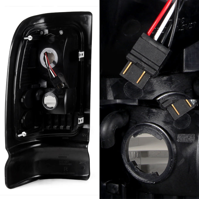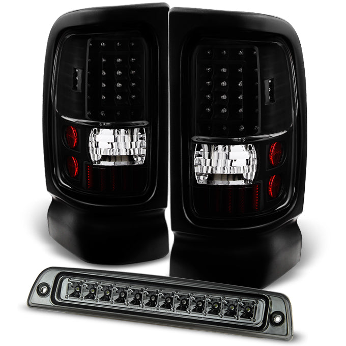 AKKON - For 1994-2001 Ram 1500 1994-2002 Ram 2500 3500 Pickup Truck Black G2 LED Tail Lights + Smoke LED 3rd Brake Light