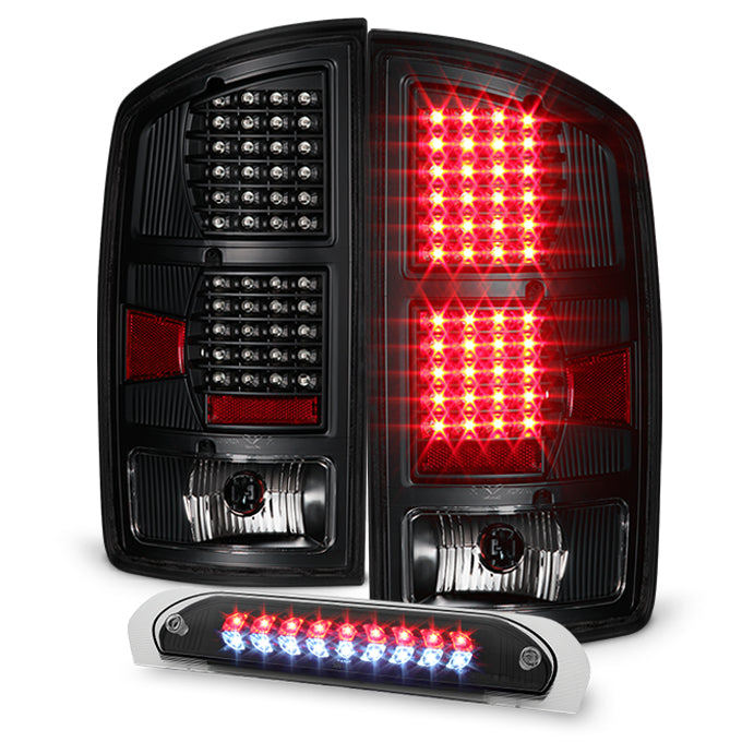 AKKON - For 2002-2006 Dodge Ram 1500 | 2003-06 Ram 2500 3500 SMD LED Black Taillights + LED 3Rd Brake Lamp Pair