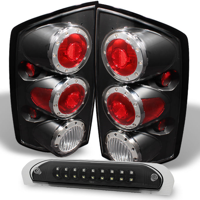 AKKON - For 02-06 Ram 1500 03-06 Ram 2500 3500 Pickup Truck Black LED Tail Lights + Black LED 3rd Brake Light