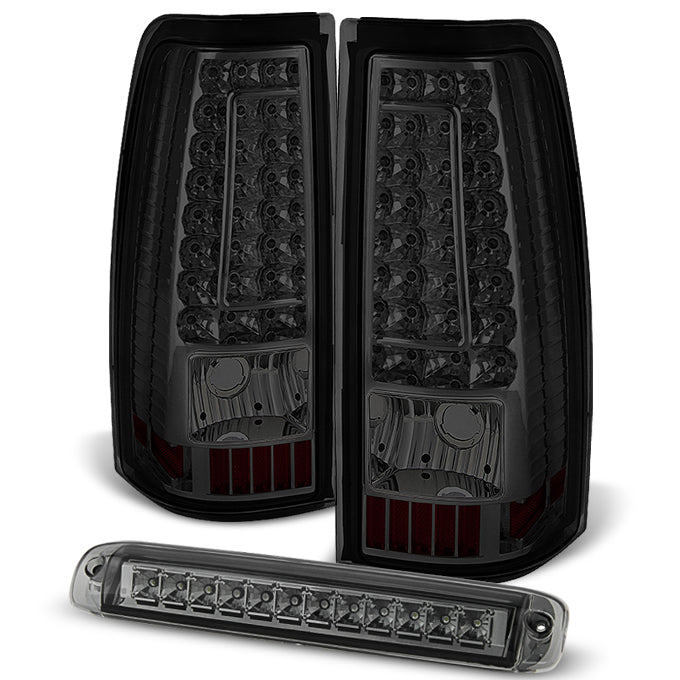 AKKON - For 99-02 Chevy Silverado 09-03 Sierra G2 Smoke LED Tail Lights Lamps + Smoked LED 3rd Brake Light Combo