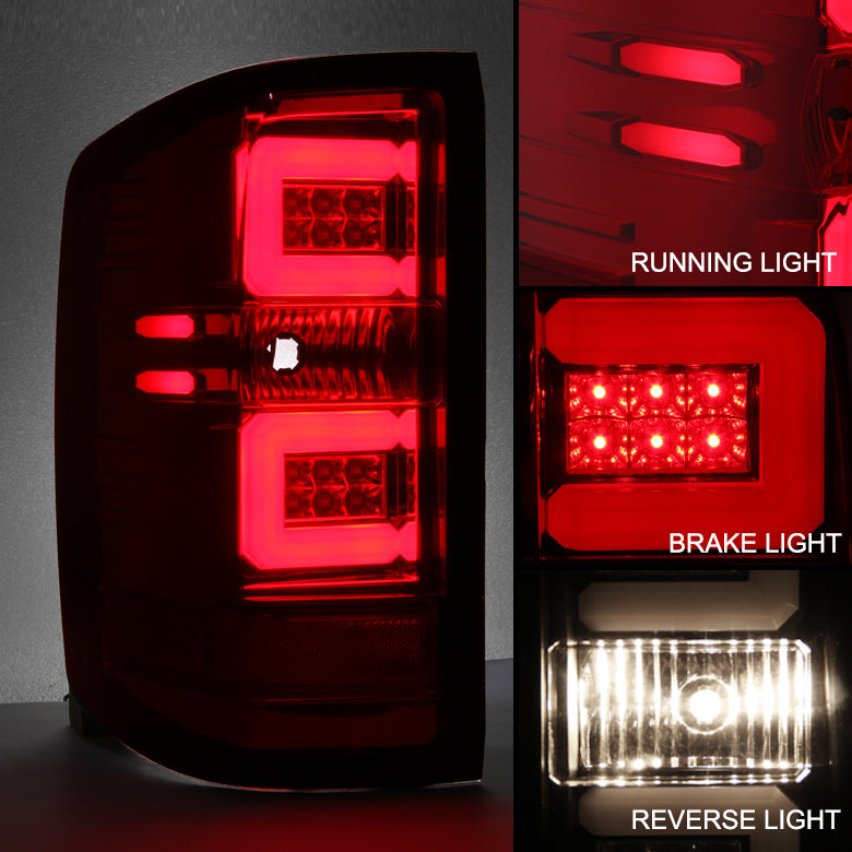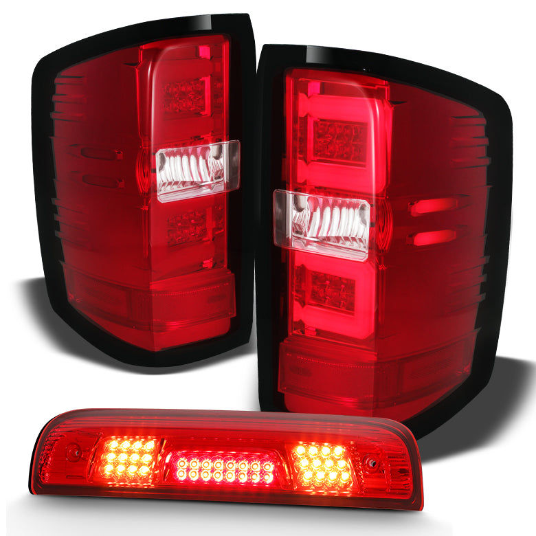 AKKON - [Red LED Style] Fits Silverado 15-19 1500 2500HD / Sierra 3500 HD Tube Tail Lamps + 3rd Brake Cargo Light 3pcs