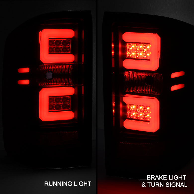 AKKON - Fits 2014-2019 Chevy Silverado 1500 | 15-19 2500 3500 HD LED Tube Black Tail Lights + LED 3rd Cargo Brake Lamp