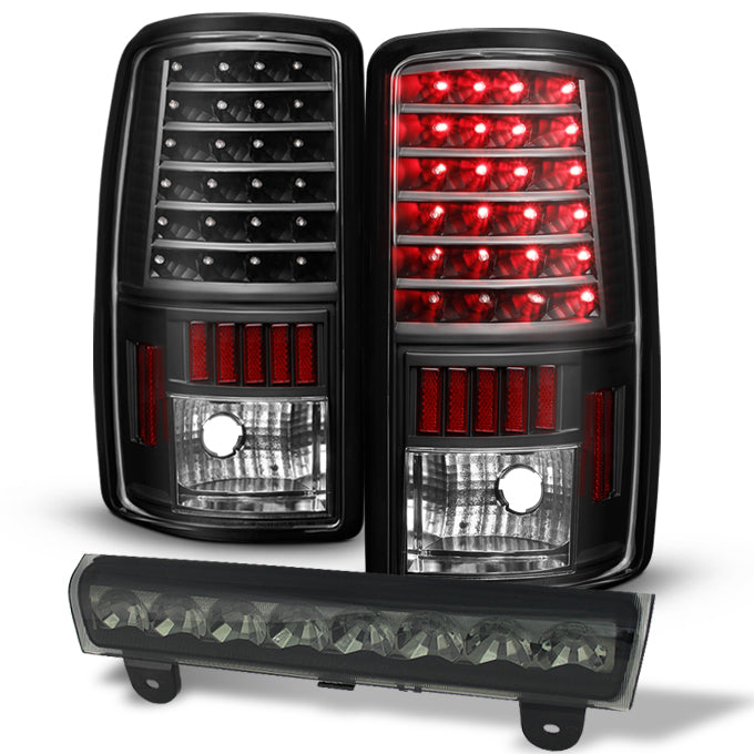 AKKON - For 2000-2006 Chevy Suburban Tahoe | GMC Yukon XL Lift gate Model Black LED Tail Lights + Smoke LED 3rd Brake Lamp