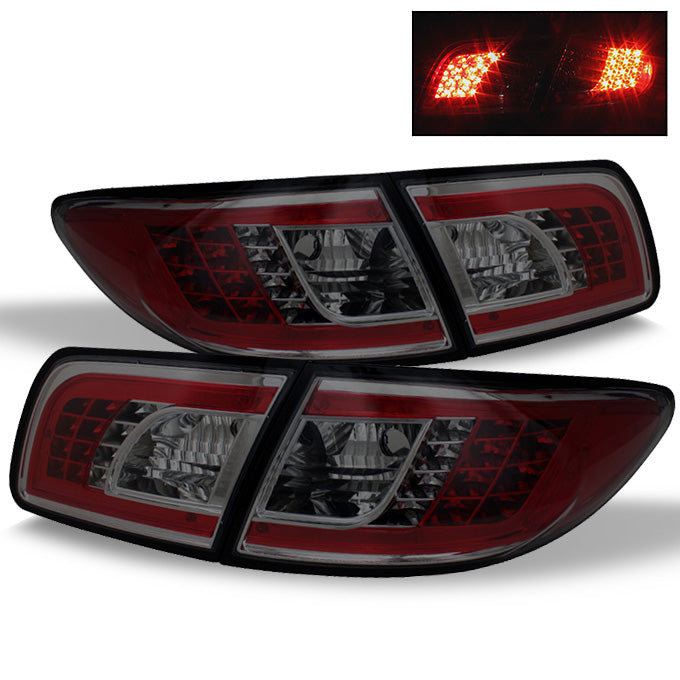 Fits Smoked 03-08 Mazda Mazda 6 4Dr Sedan 4Pcs LED Tail Brake Lights+Trunk Piece