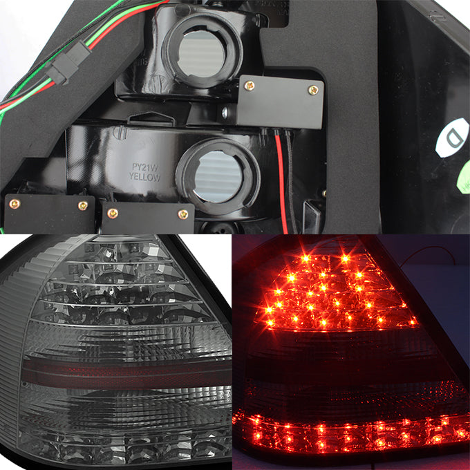 AKKON - For 05-07 Benz W203 C-class 4 Doors Sedan Smoked Smoke Rear LED Tail Lights Brake Lamps Replacement Pair
