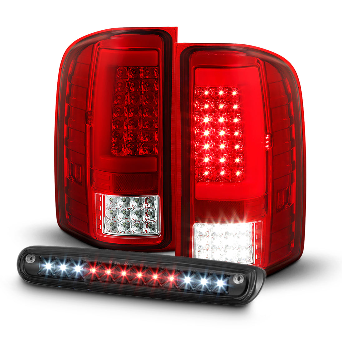 AKKON - Fits 2007-13 14 Silverado 1500 2500HD 3500 HD Sierra 3500HD LED [C-Tube] Sequential Signal Red Tail Light+3rd Brake Lamp