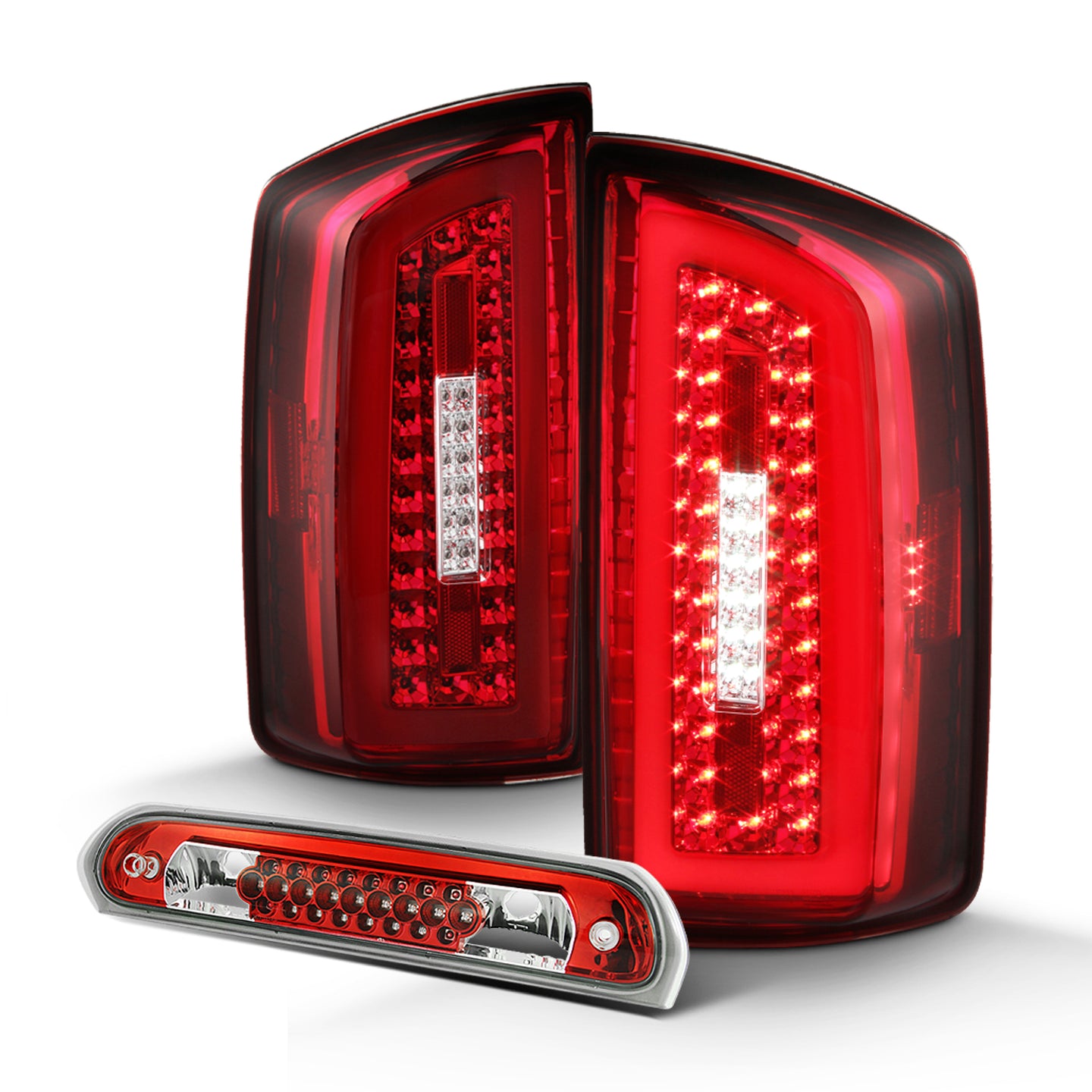 AKKON - Fits 2007 2008 Ram 1500 2500 / 2009 3500 Full LED Tube Bar Red Clear Tail Lights Brake Lamp + Red 3RD Brake Light Pair