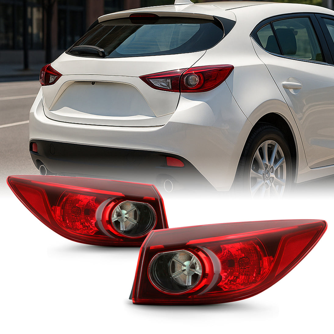AKKON - Fits 2014 2015 2016 2017 2018 Mazda 3 4Door Sedan Model [Halogen Type] Outer Tail Lamps Brake Lights Pair Left+Right